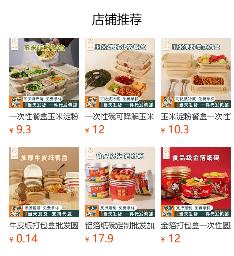 一次性玉米淀粉碗餐盒食品级家用外卖打包盒环保可降解饭盒快餐碗
