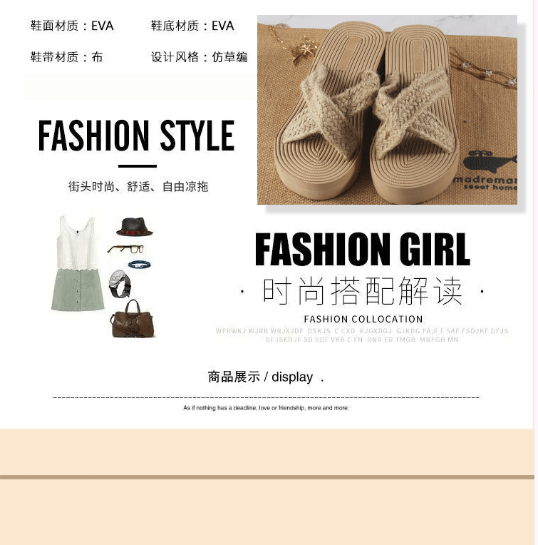 夏の新型evaは草編みのファッション的な交差帯をまねてビーチのレジャー坂とスリッパの外で女性のサンダルを履いています。