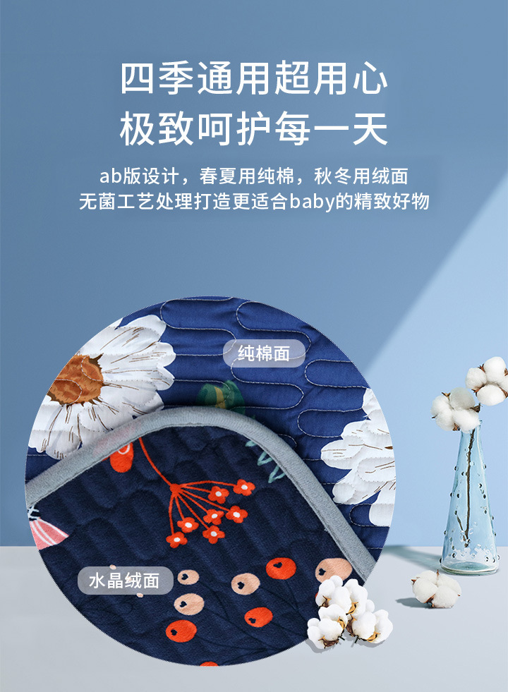 純綿ベルベットおむつ子供防水洗濯できる月経マット叔母マット生理期マットレス防水子供両面
