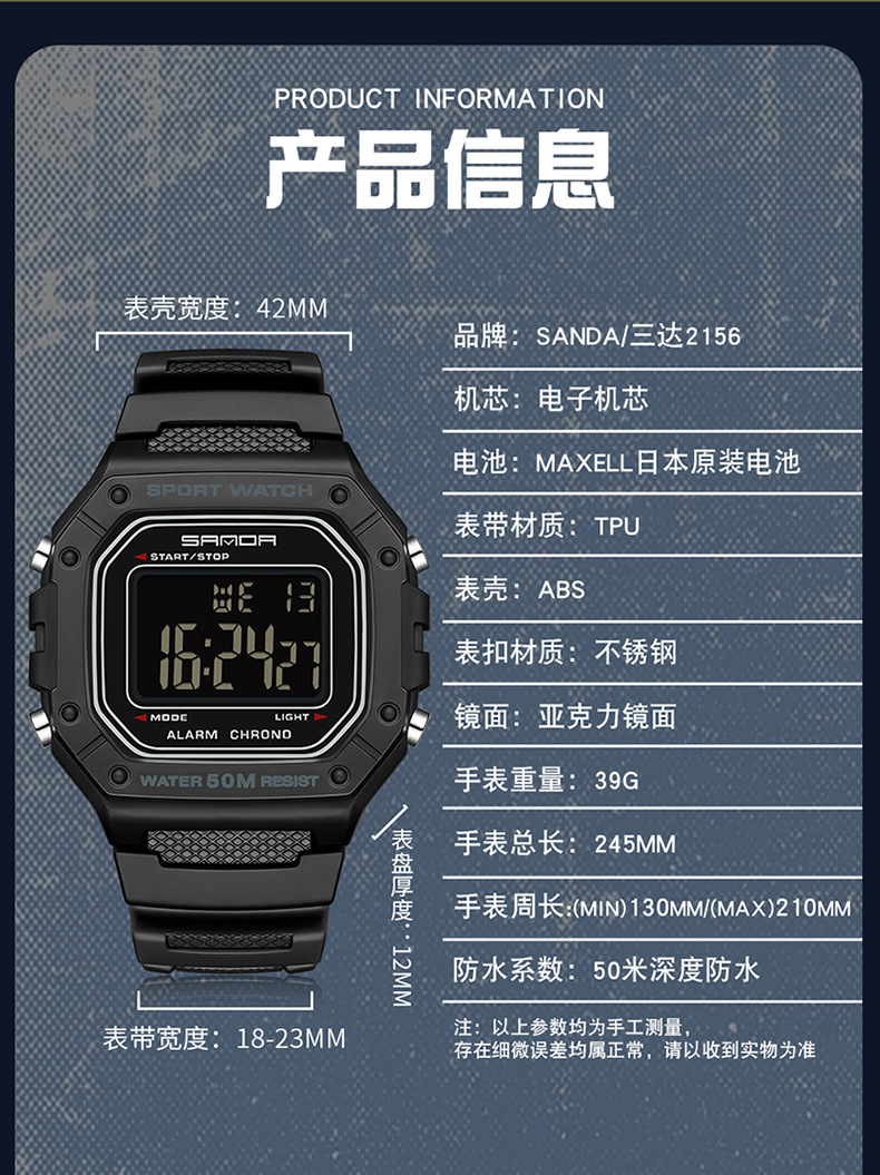 専門店の正規品ファッションデジタル夜光電子防水2025男性スポーツ腕時計屋外学生腕時計