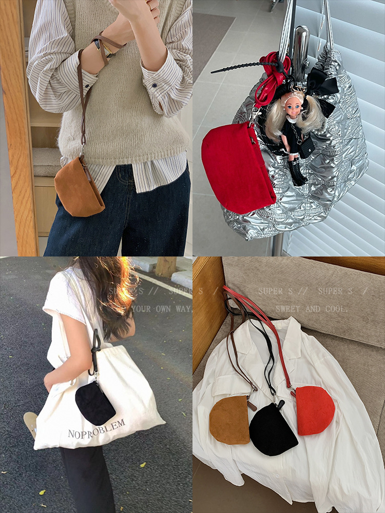 韓系博主のスエードの皮の毛の面のミニの小さい包みの女性の早秋の復古の首の装飾品の2024新型の小銭入れ