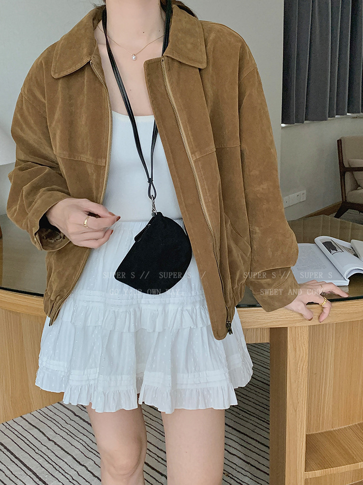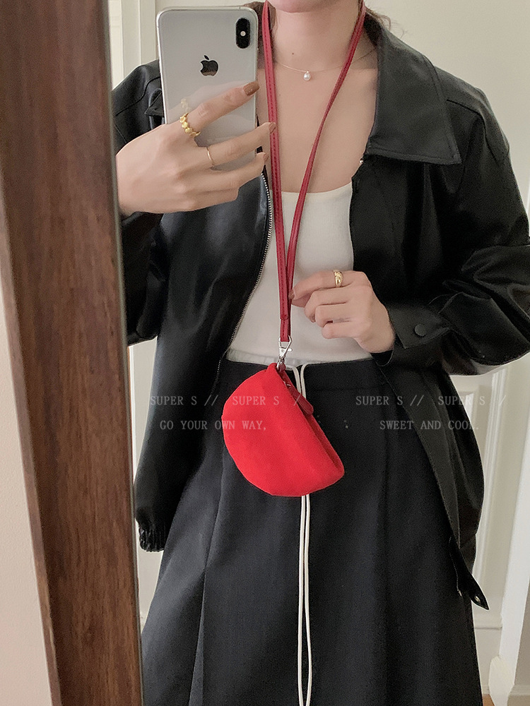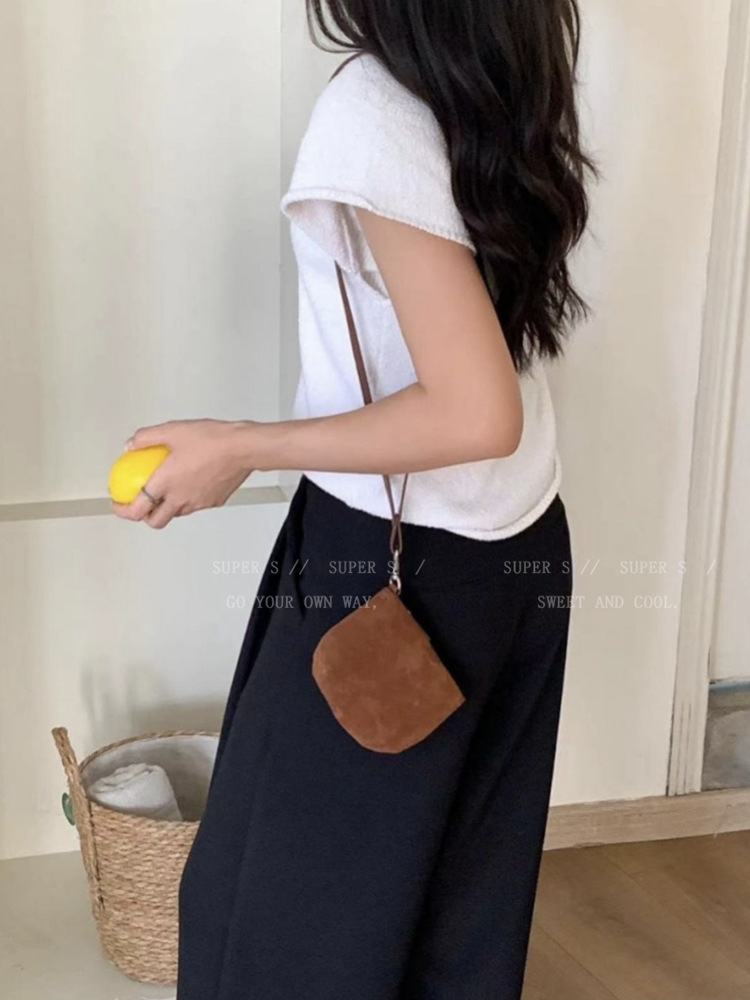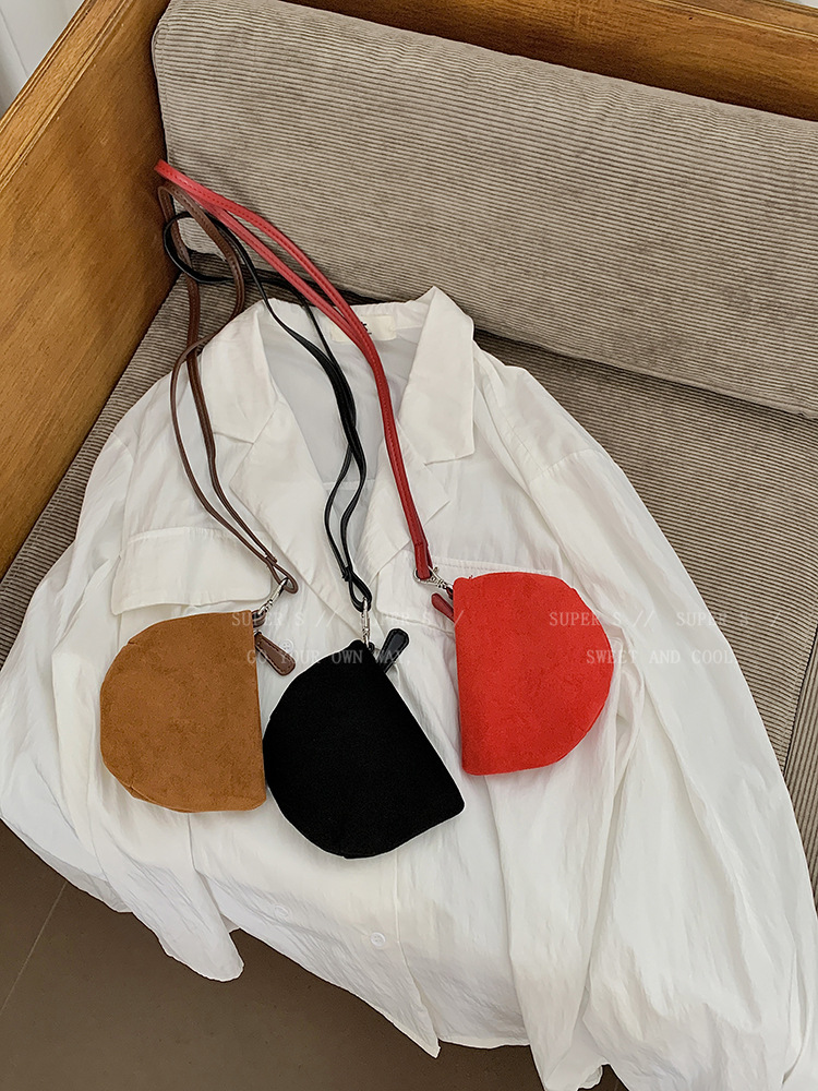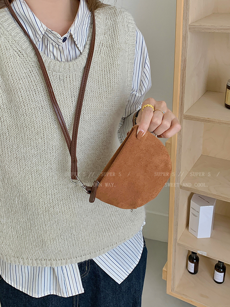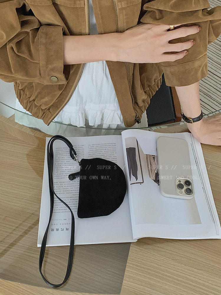 韩系博主麂皮绒面迷你小包包女早秋复古挂脖配饰品2024新款零钱包