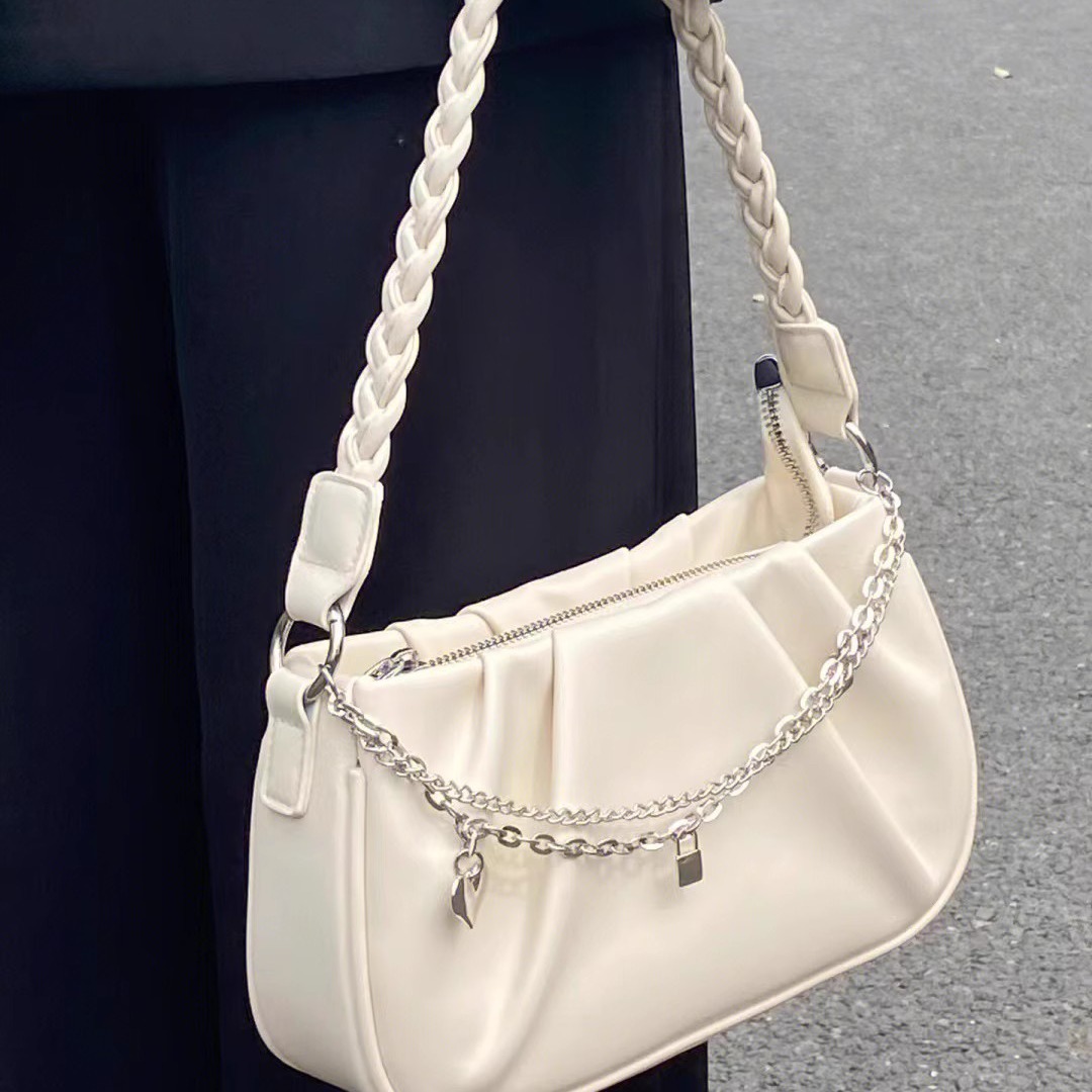 フランスの多用途白プリーツクラウドバッグ女性のための 2025 新しいパールチェーン脇の下バッグシングルショルダークロスボディバッグ女性のための