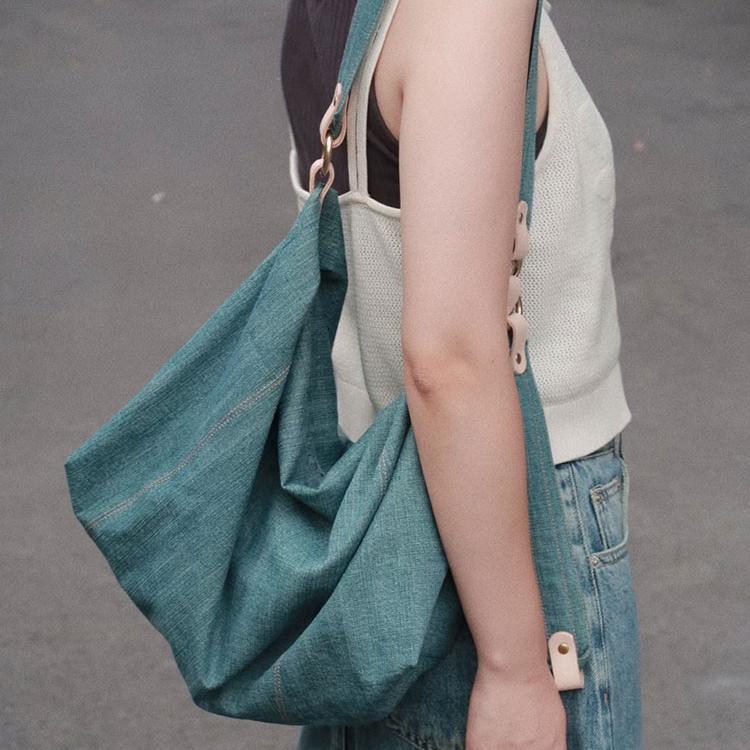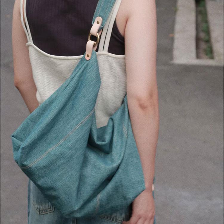新型デニムキャンバスバッグ百合大容量シングルショルダーバッグカジュアル通勤トートバッグ
