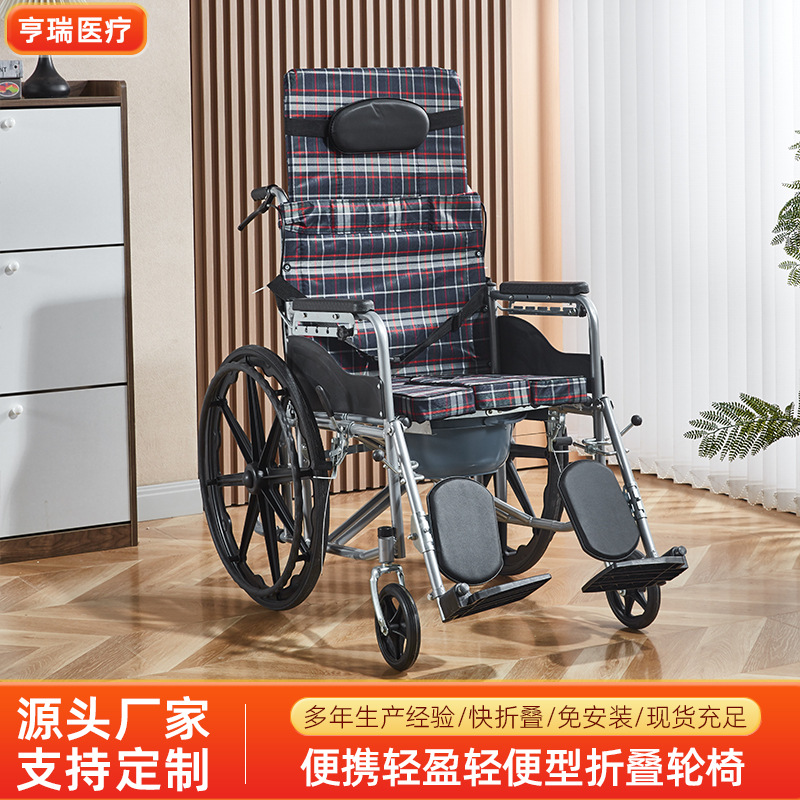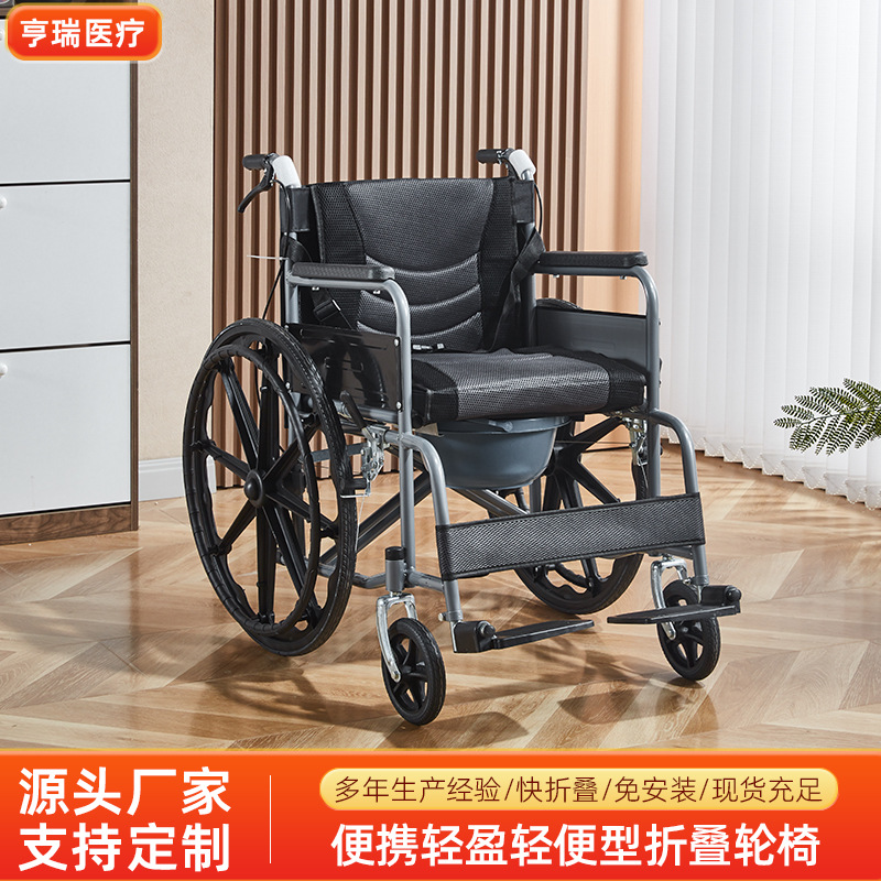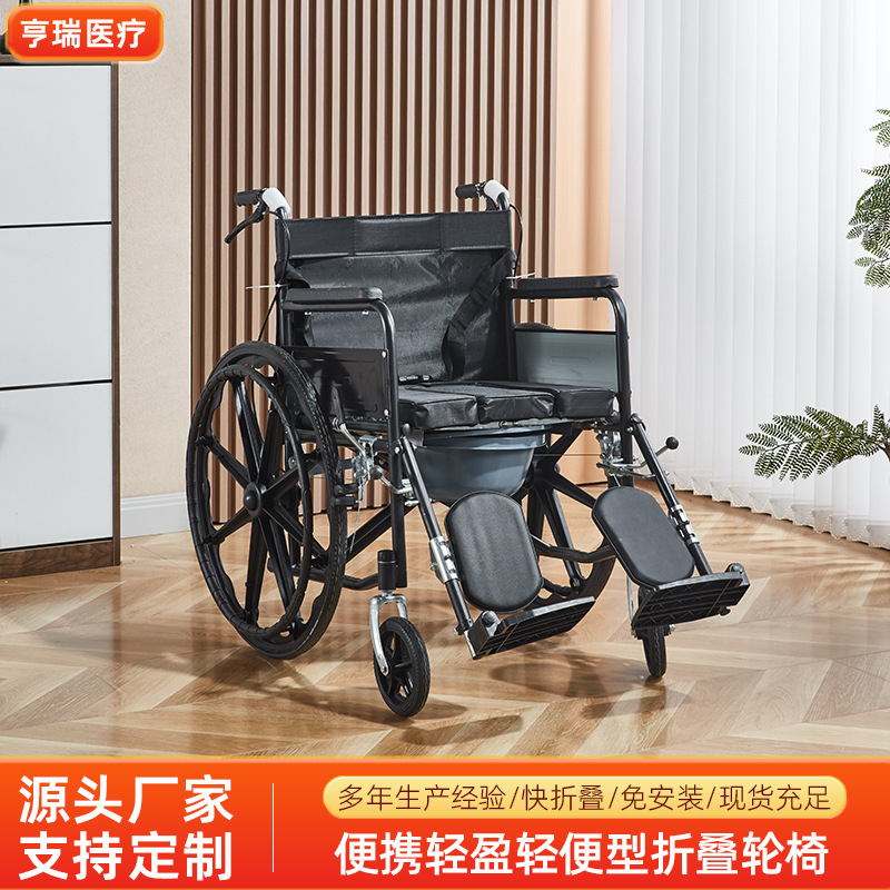 クロスボーダー輸出厚手鋼管老人車椅子折り畳み軽便便器付き高齢者折り畳み手動車椅子車