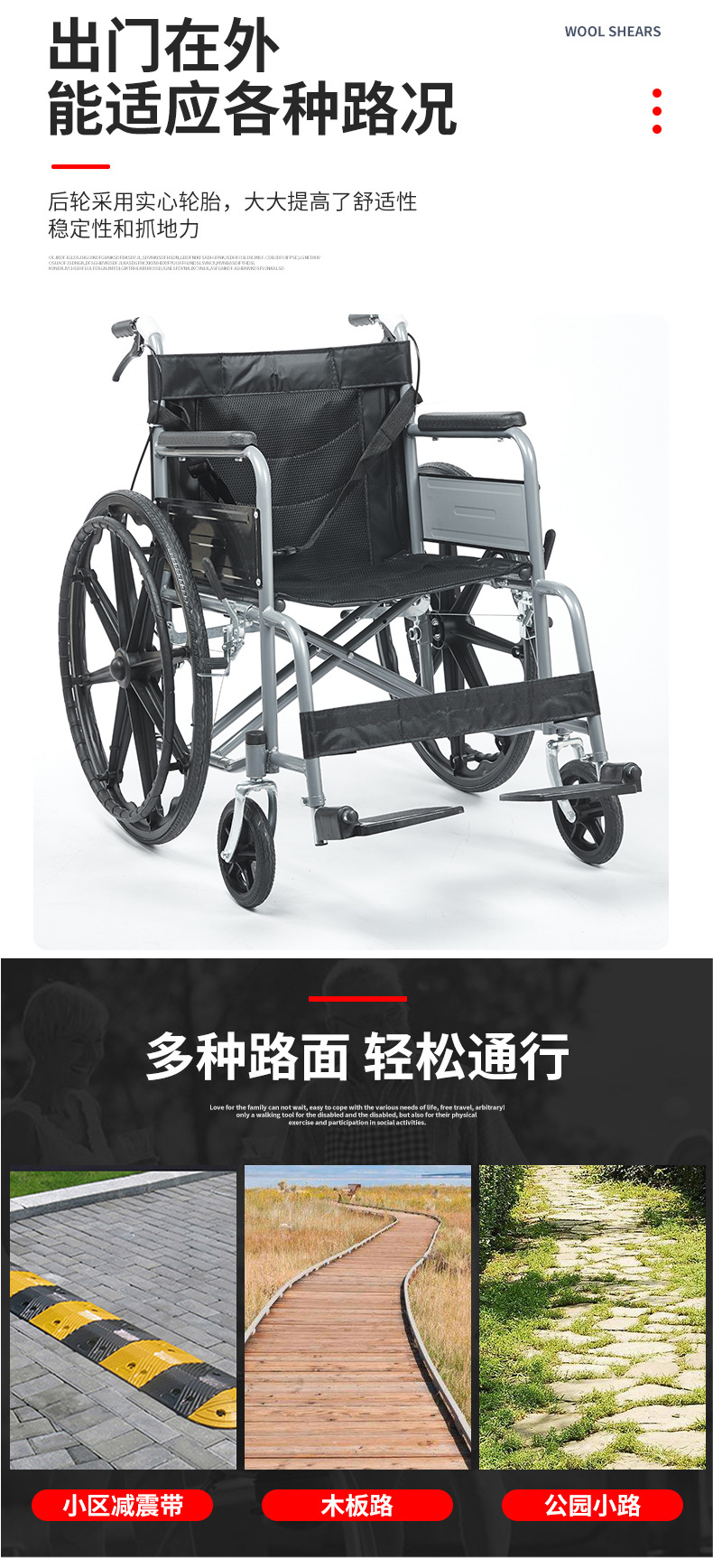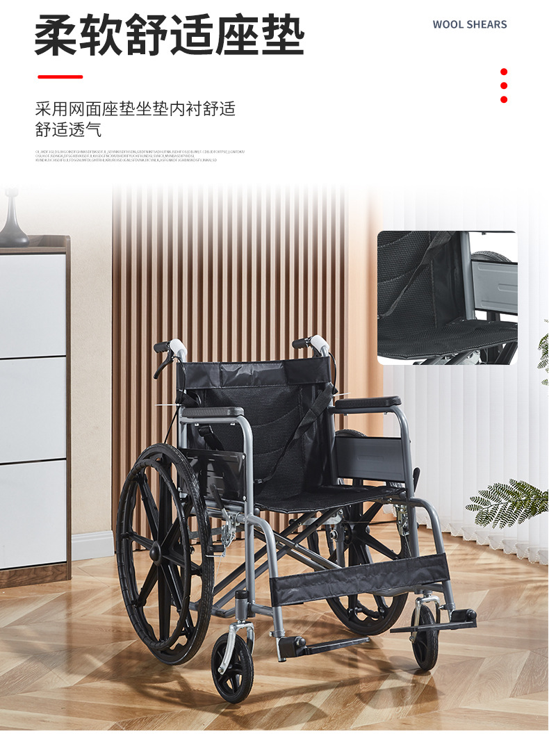 软座轮椅家用老人超轻便便携代步车手推车可折叠收纳手动医用轮椅