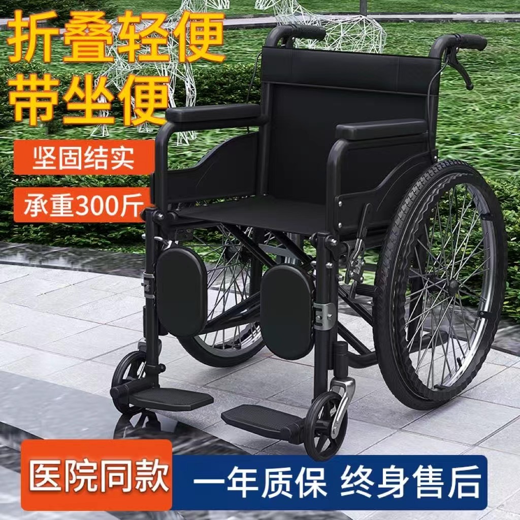 轮椅医院同款折叠软座舒适带坐便老人免充气手动轮椅车厂家直销