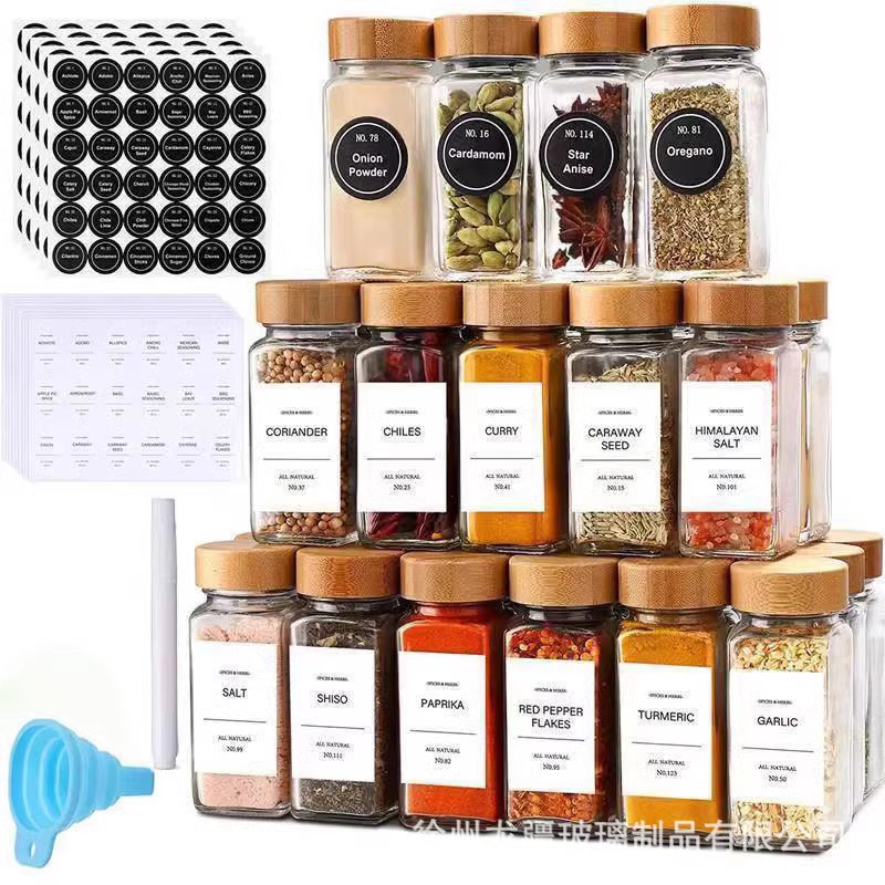 越境アマゾン4オンス角型調味料ボトル120ml竹製蓋付きガラス調味料入れペッパー塩入れセット