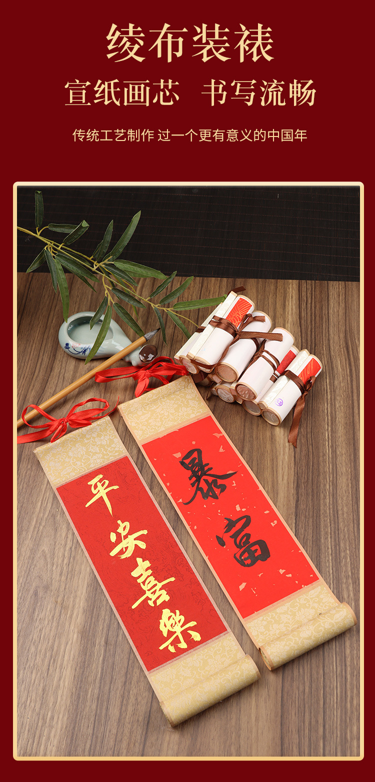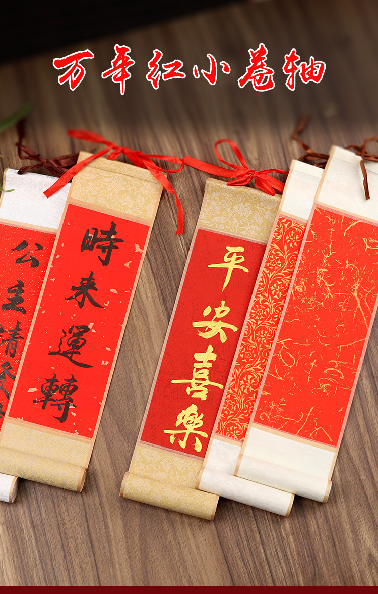 万年紅ミニリール掛け軸対聯手書き空白手巻き赤宣紙毛筆書画書道作品紙