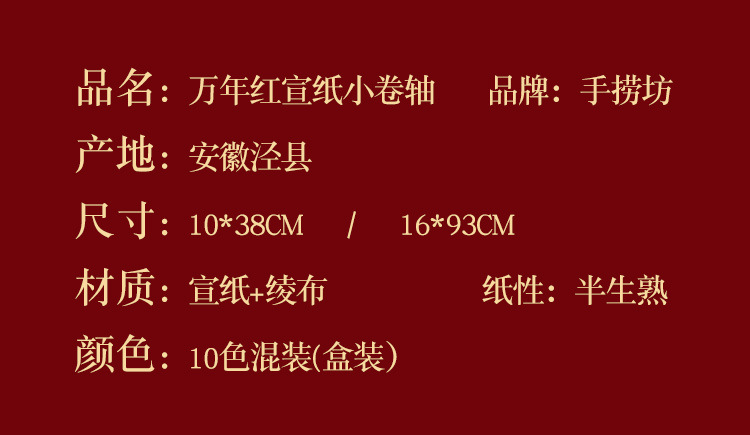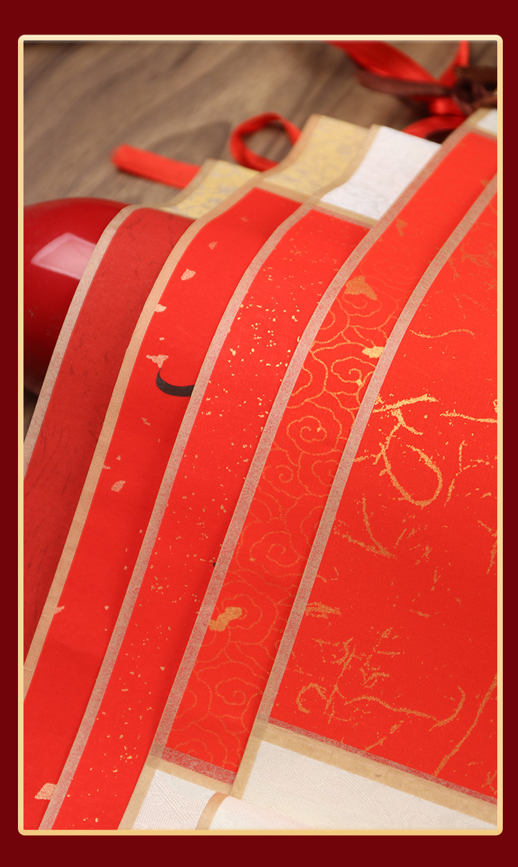 ミニリール中国紅万年紅宣紙リール掛け軸散布金宣紙空白書道創作手巻