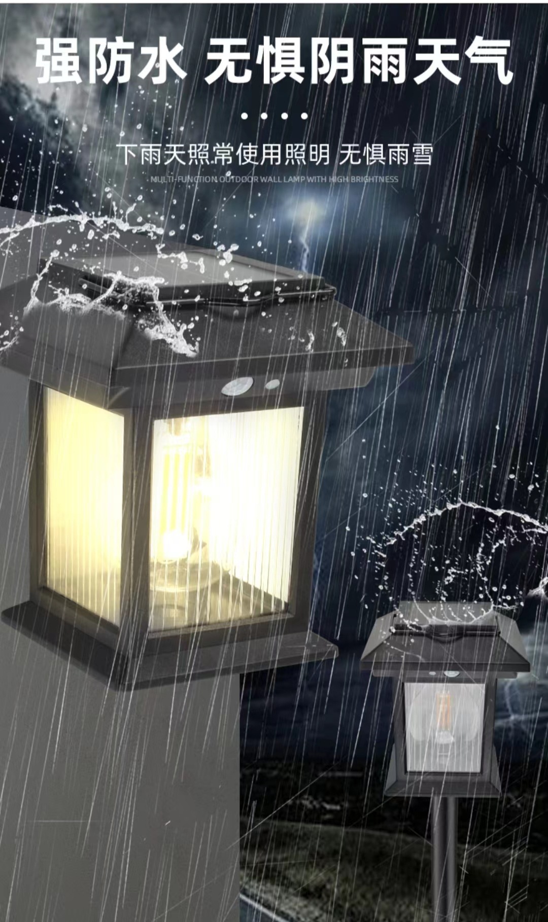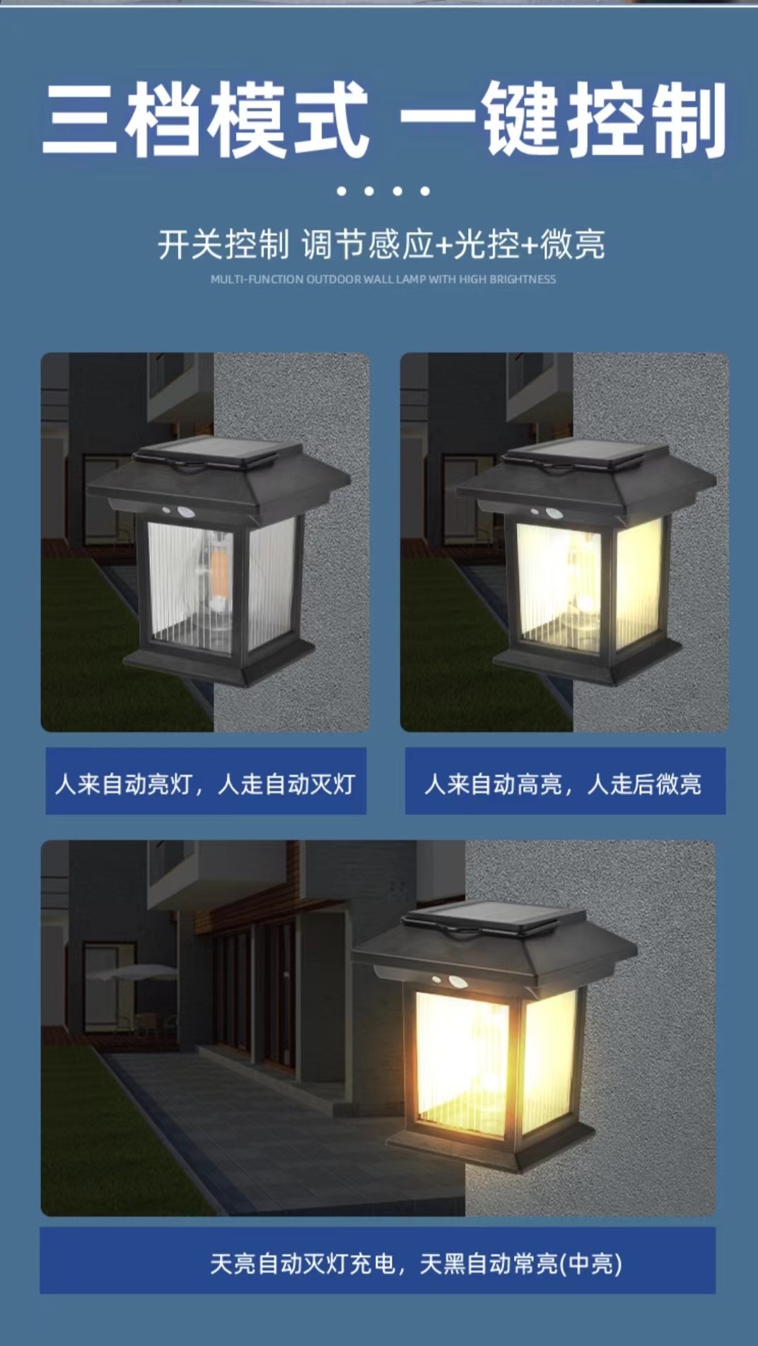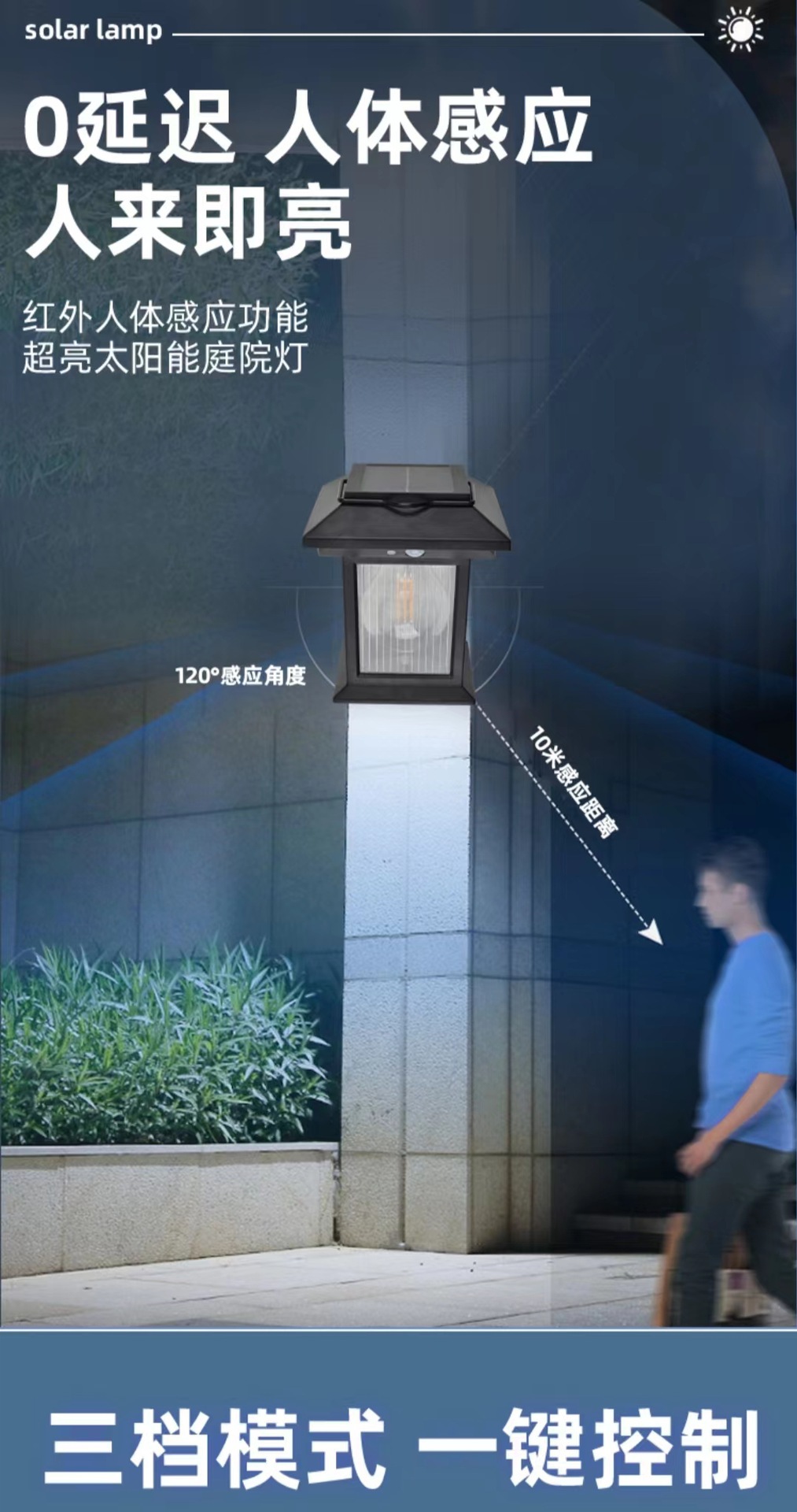 ソーラー誘導式分割型屋外四面庭園灯、屋外防水一体型街路灯、壁掛け照明、調光可能