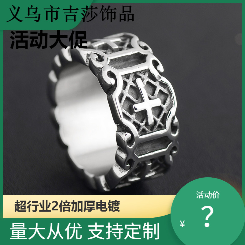 ヒップホップパーソナリティリング日本と韓国のレトロクロスリングメンズタイシルバートレンディな男性の人差し指シングル男性多用途リング