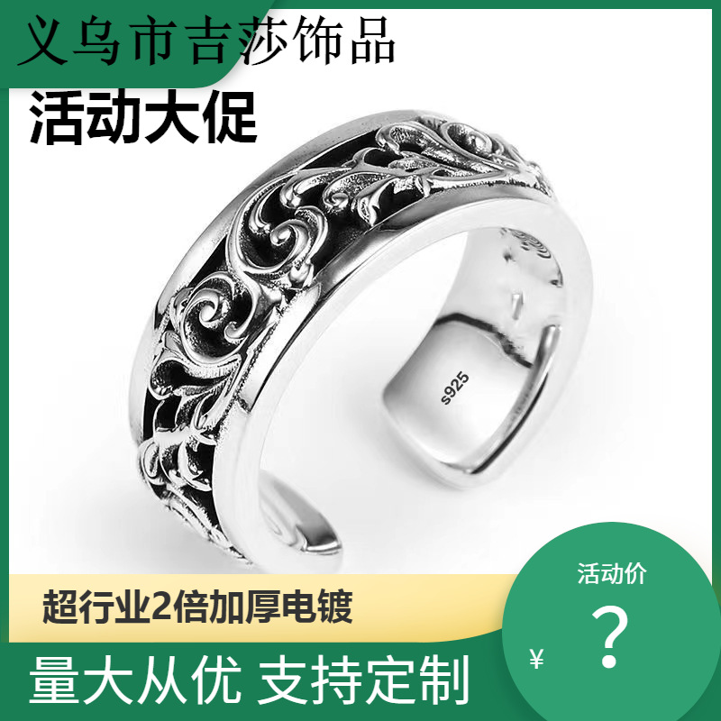 タイシルバーレトロ唐草リングカップルシルバーアクセサリー手作りギフトオープンリング日韓風トレンドアクセサリー