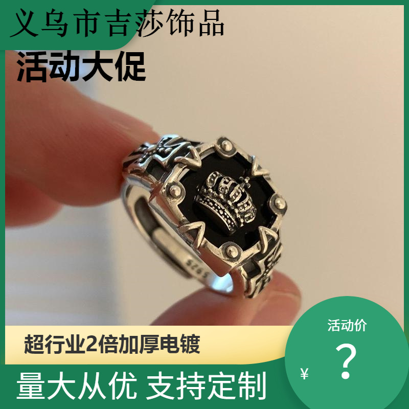 韓国版s 925銀皇冠指輪女性レトロファッション重工クロスオープンリングヒップホップ暗黒食指戒