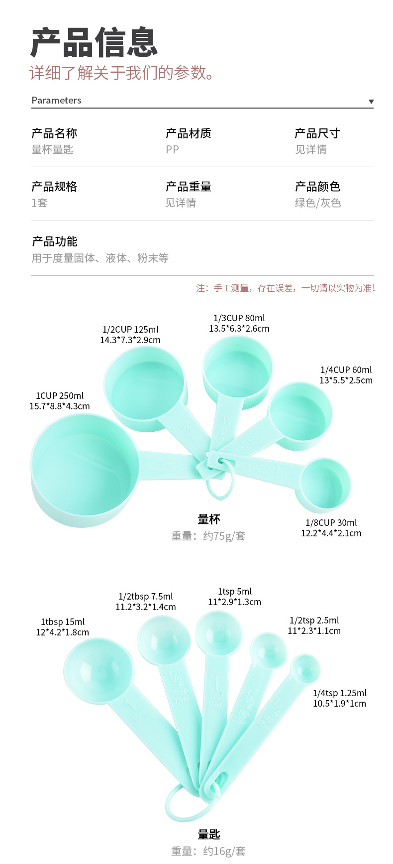 現物プラスチック計量スプーン10点セットプラスチック計量スプーン計量カップ焙煎ツールセット焙煎計量ツール