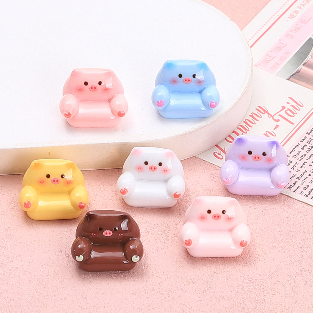 立体彩色小猪沙发创意手工diy奶油胶树脂配饰小配件饰品材料批发