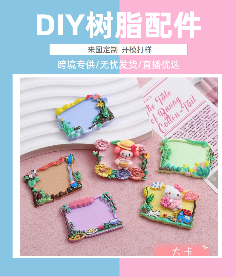 漫画の細いフラッシュカラーの皿のクリームゴムdiyの手作りのヘアピンの冷蔵庫は材料の樹脂の部品を貼って卸売りを飾ります。