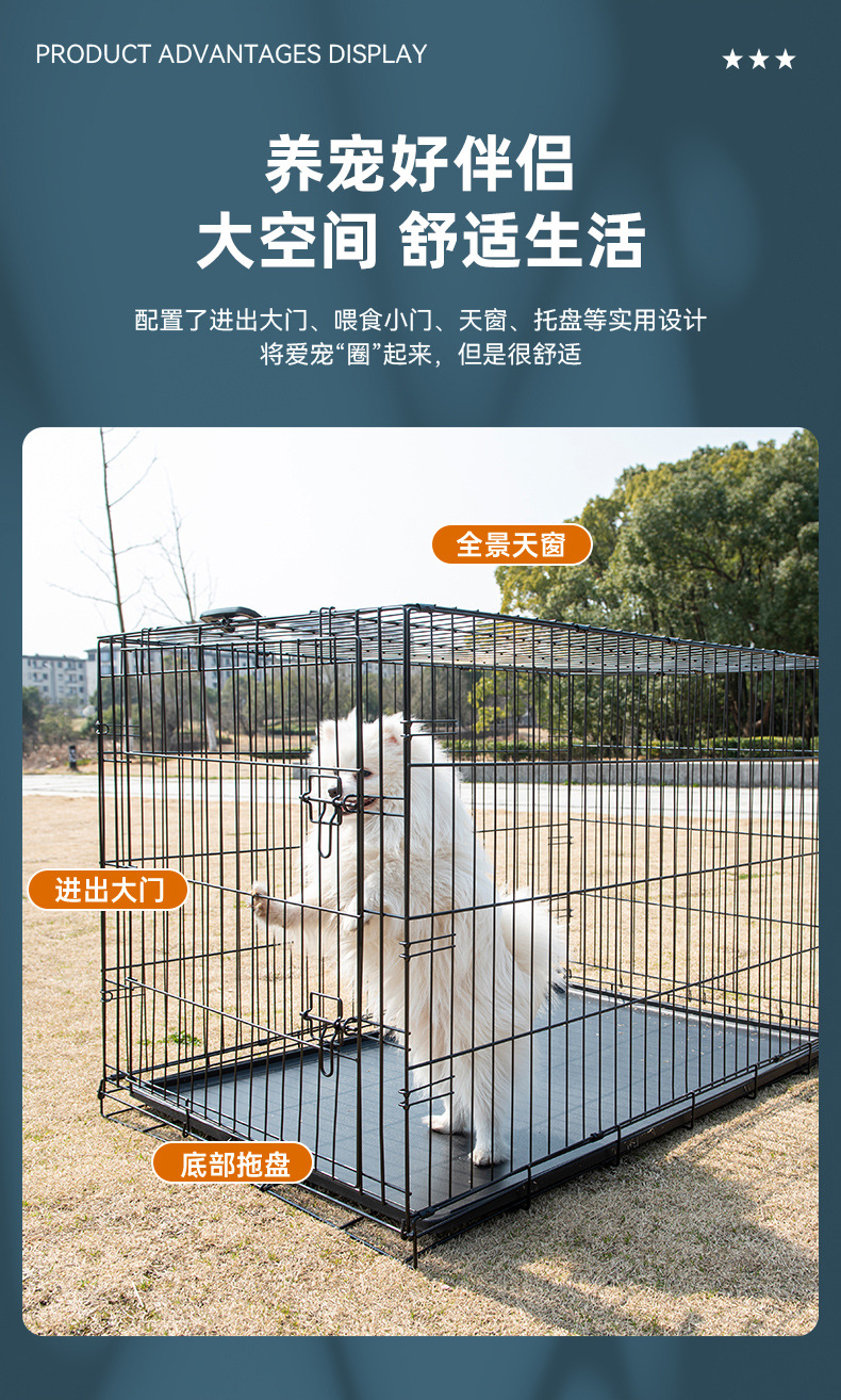 狗笼猫笼可折叠大空间带托盘宠物笼