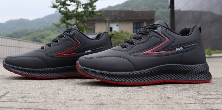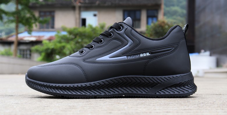 男鞋防水防滑鞋潮鞋秋冬季新款休闲鞋软底跑步鞋黑色皮面运动鞋男