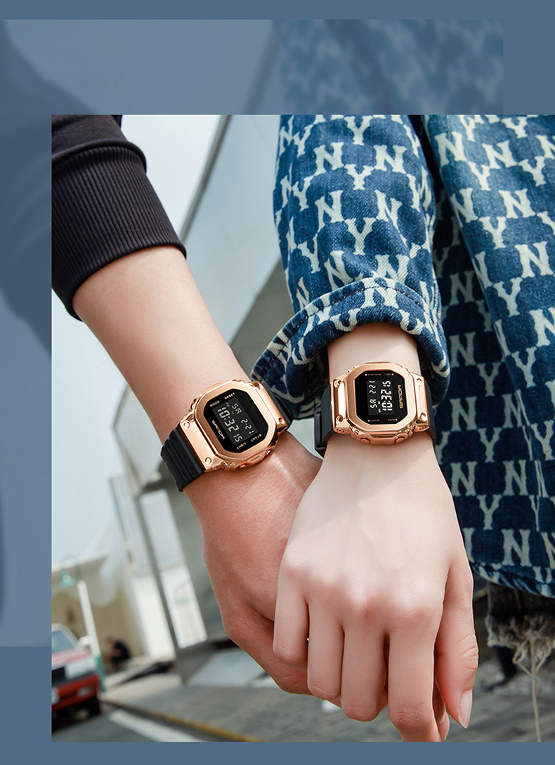 腕時計の男性の金の2024新型のファッションの潮流の小さい四角の電子の屋外の運動の夜光の防水の個性のデジタル式