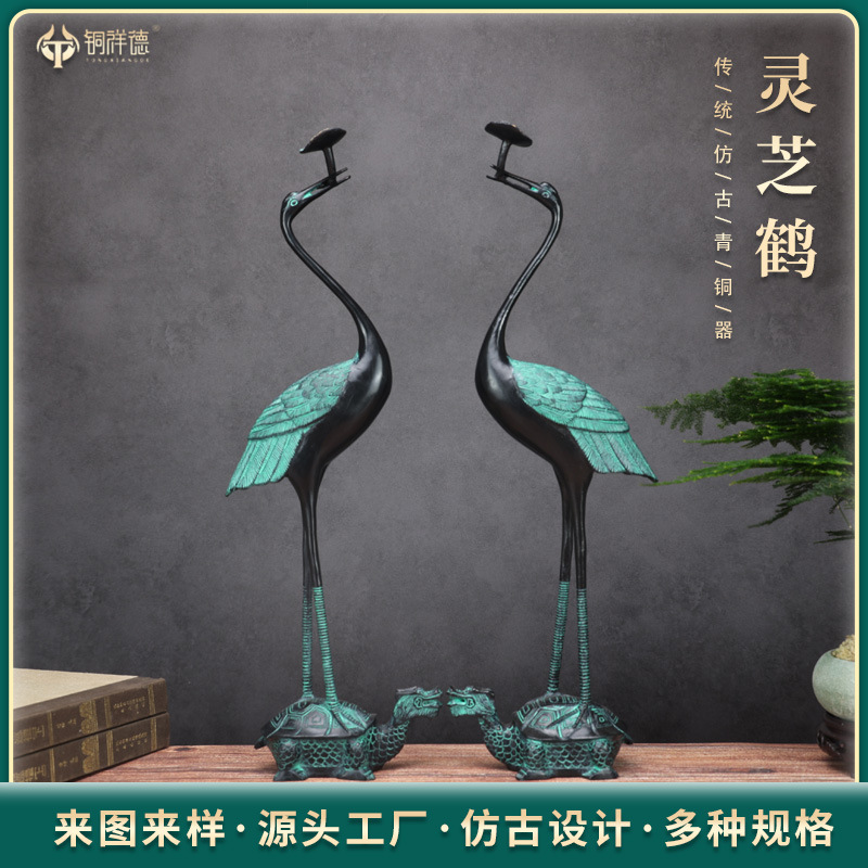 銅鶴鶴霊芝鶴亀鶴延年青銅器模造工芸品プレゼント玄関祝寿プレゼント