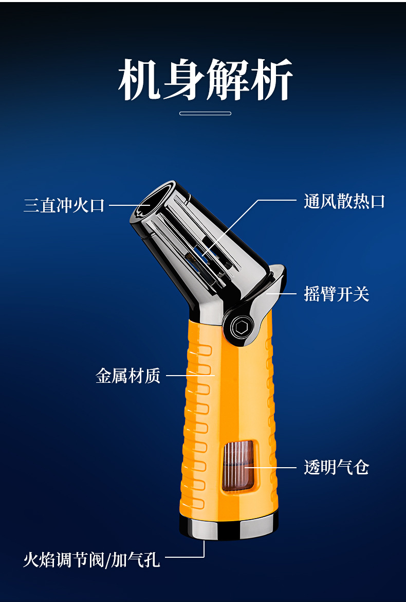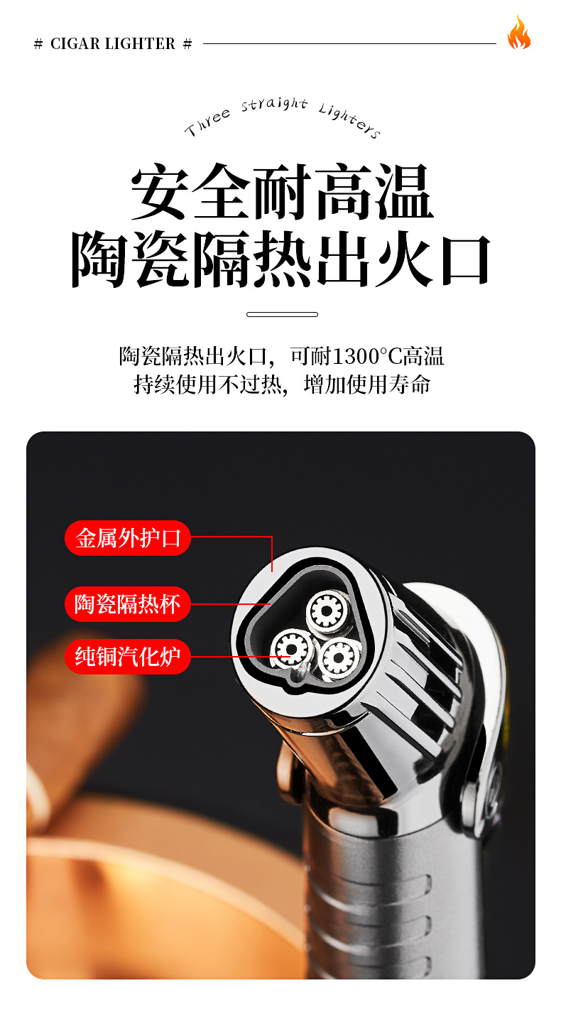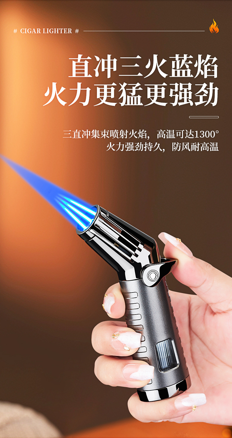 新型個性創意三直沖スプレーガンの大火力1300度三火防風ライター