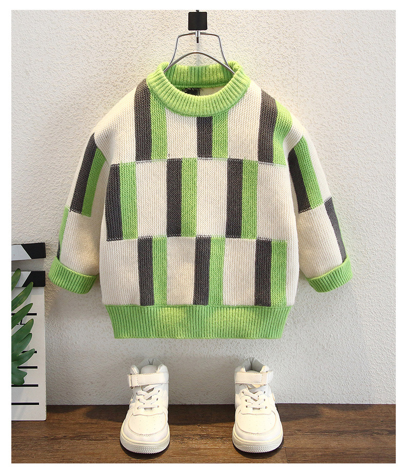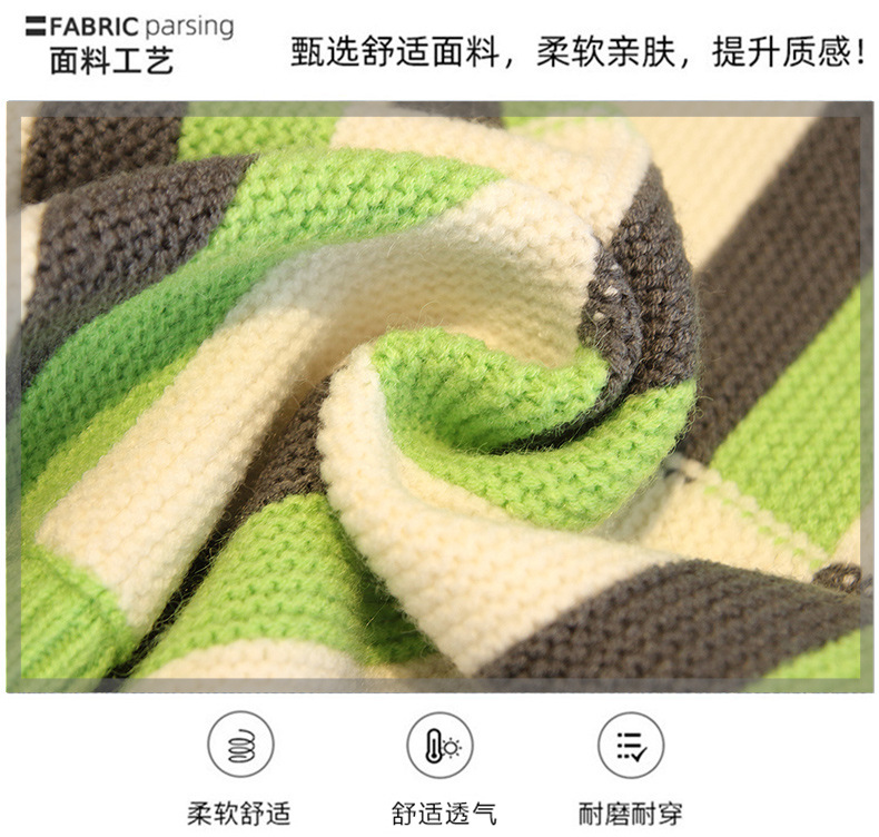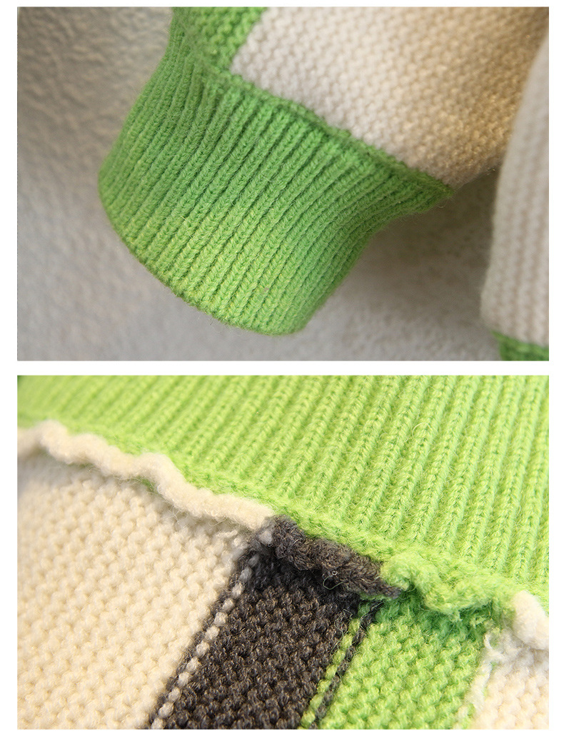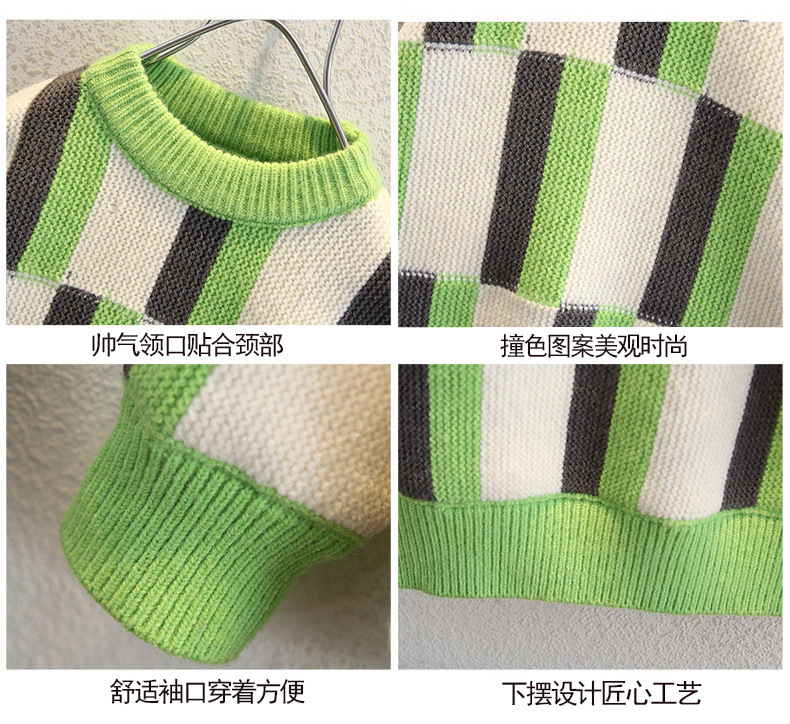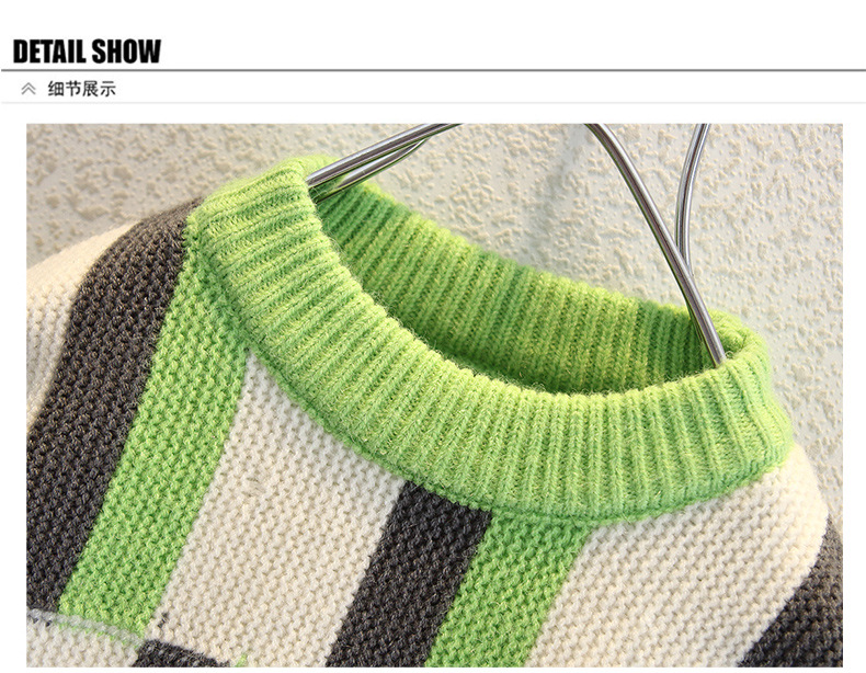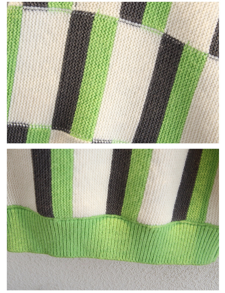 XBJ-8810 グリーンカラー縦ストライプセーター