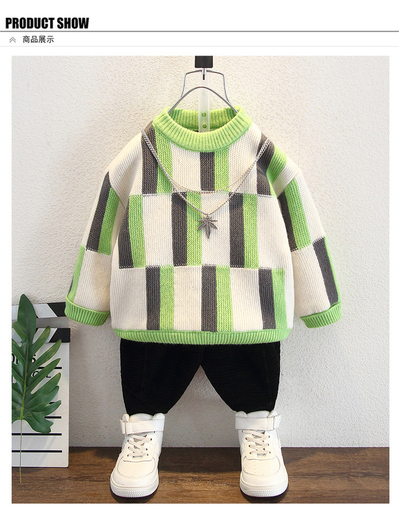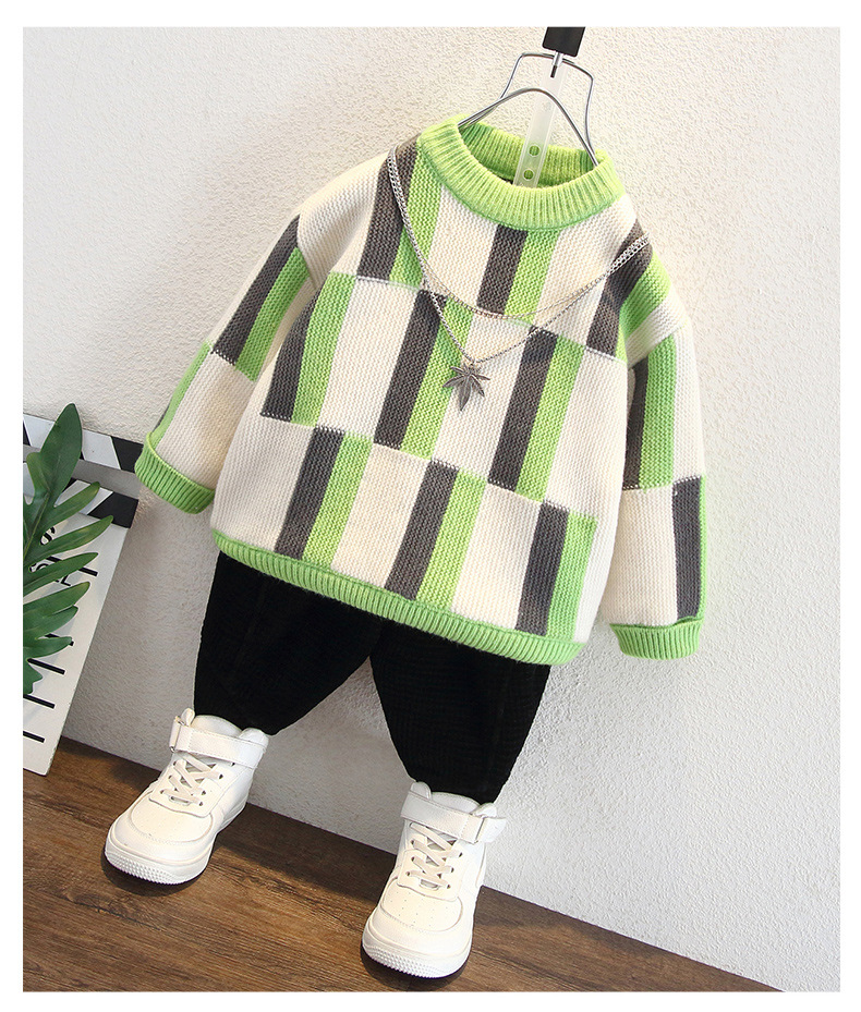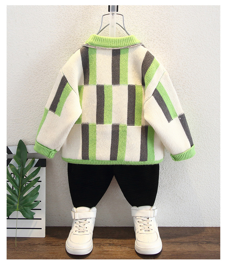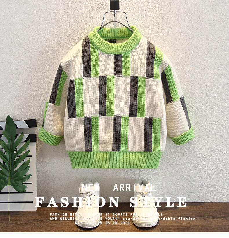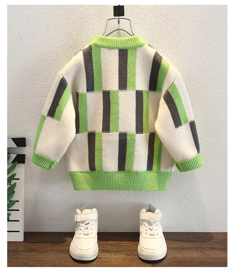 XBJ-8810 グリーンカラー縦ストライプセーター