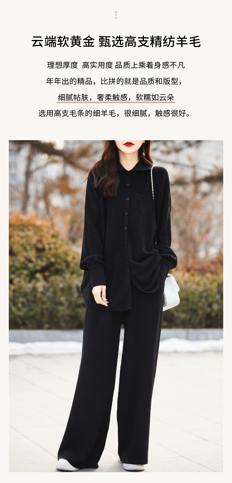 26新款慵懒风纯羊毛圆领针织毛衣套装女秋冬裤子两件套