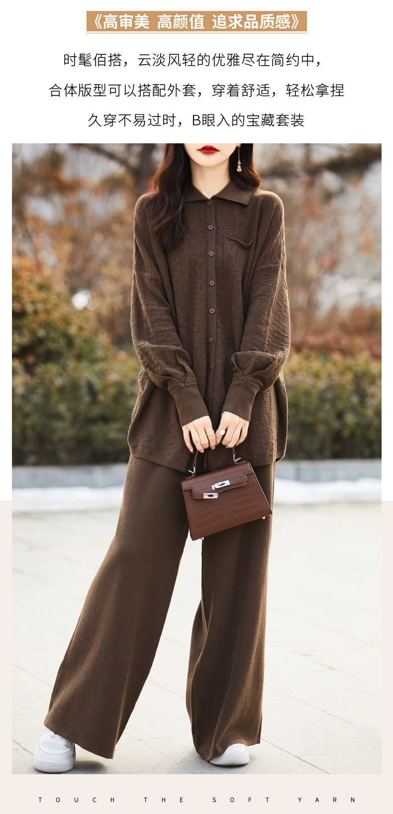 早春25新作 レディース 上質ウールスーツ おしゃれ カジュアル ラフスタイル ニットツーピースセット 着痩せ効果 ワイドパンツ