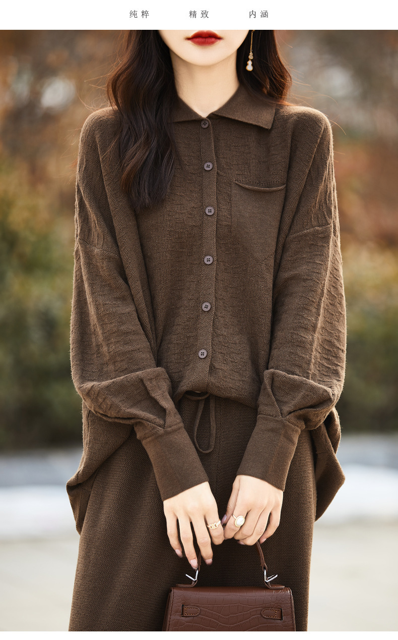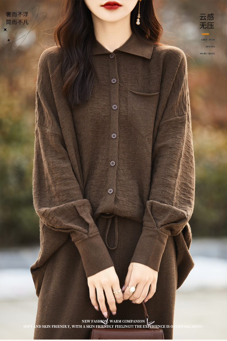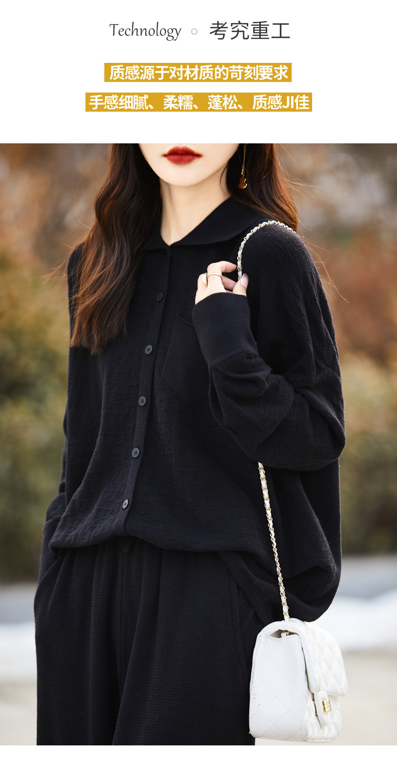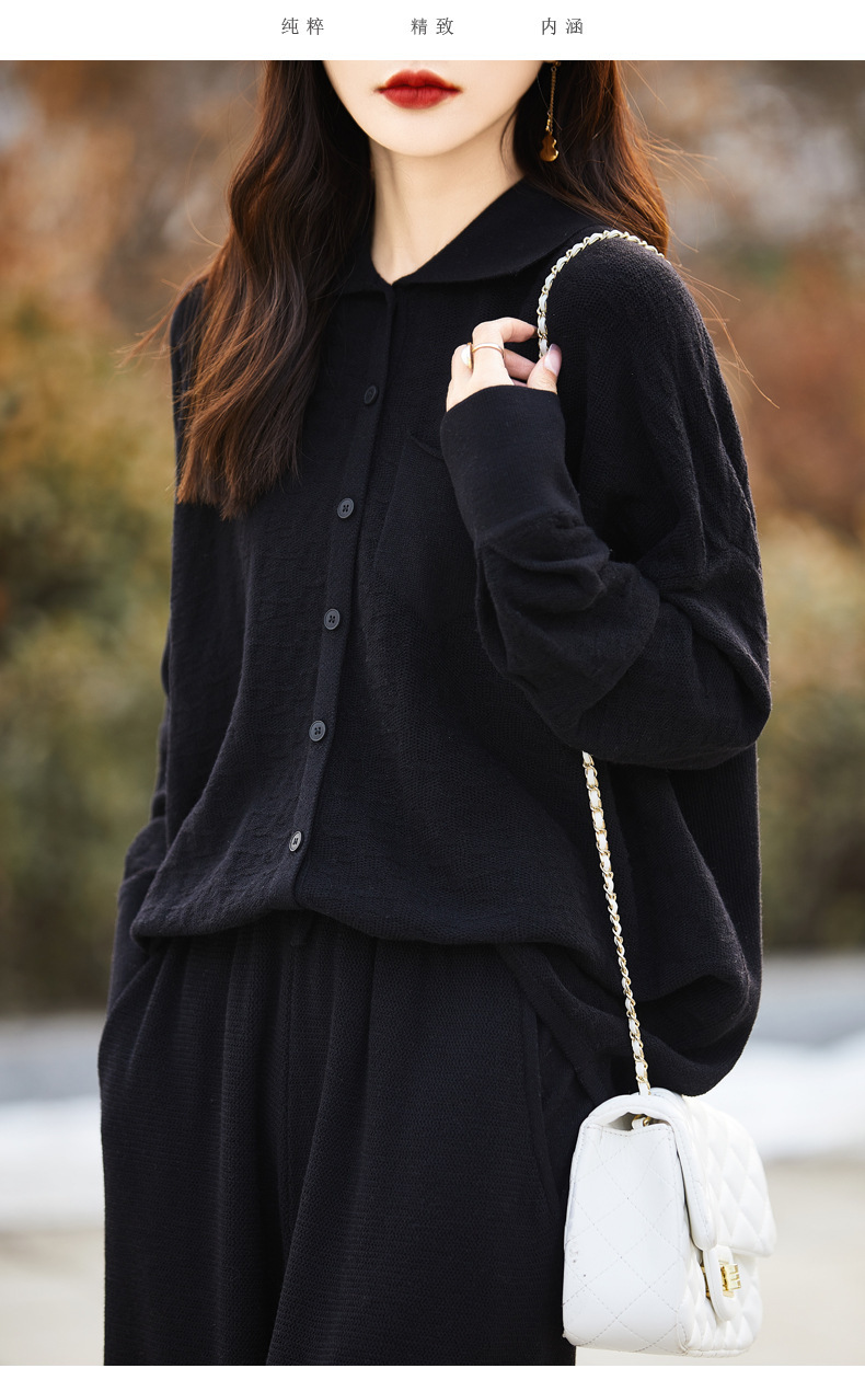 25春夏新作セット ポロ襟精織ウールシャツ ワイドパンツ ツーピースセット ニットカーディガン マキシ丈パンツ レディース