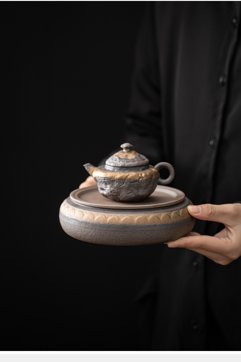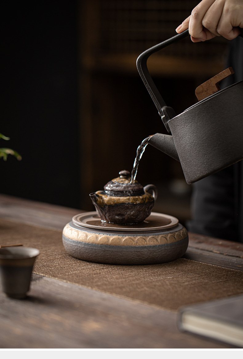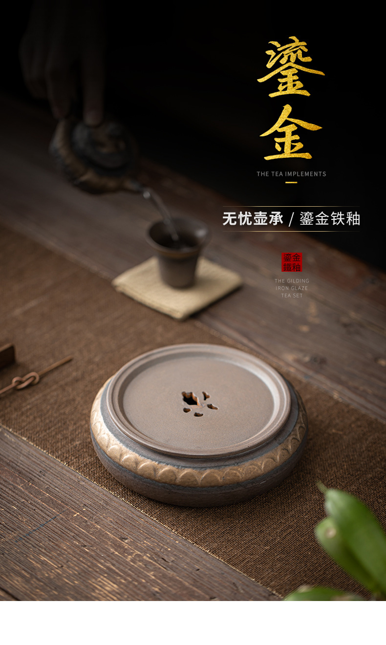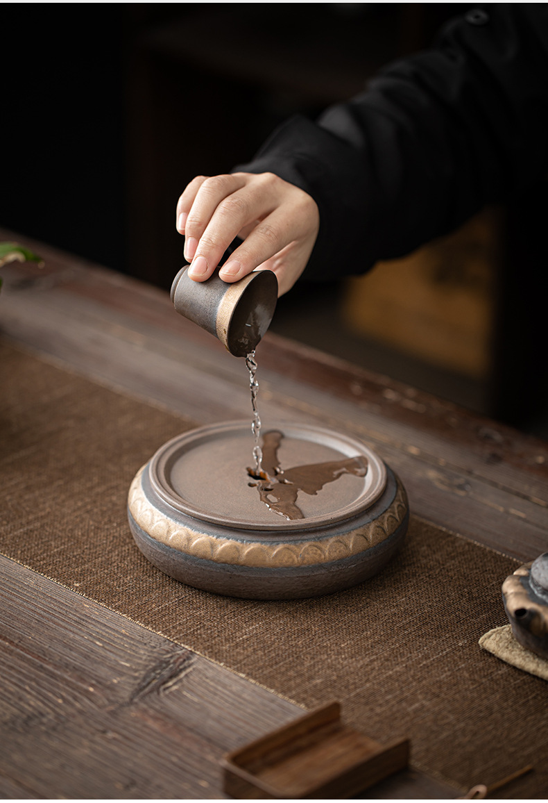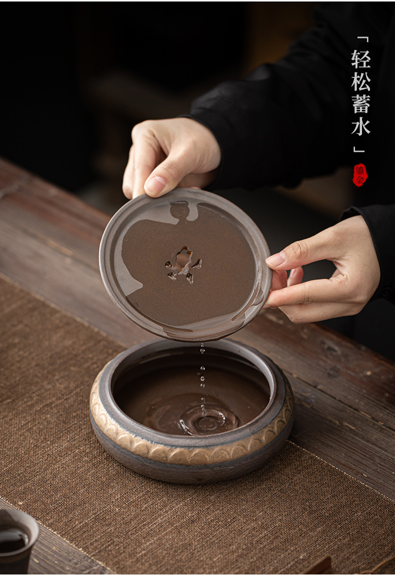 無憂壺承陶磁器貯水貯蔵水筒承壺托台円形茶盤乾泡台金鉄釉茶器