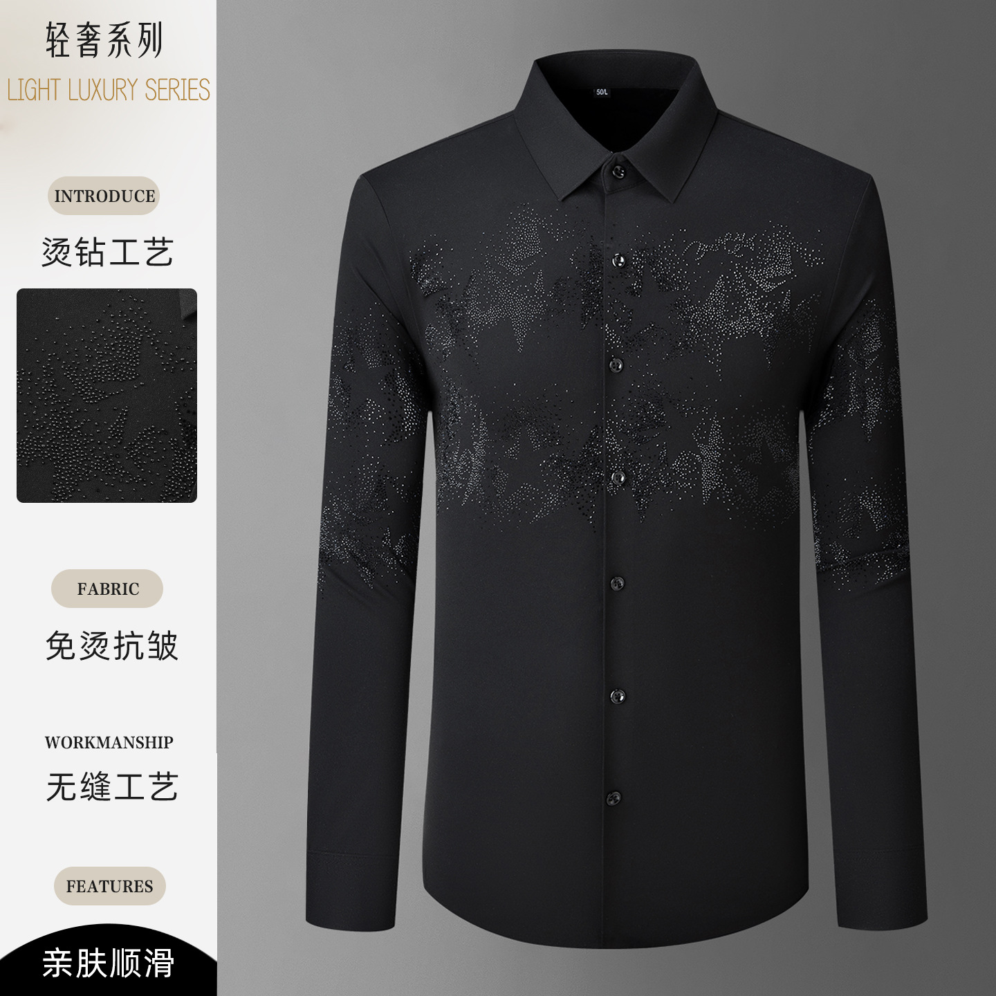 跨境男装轻奢高级感潮牌欧洲站一件代发星星修身衬衣免烫抗皱男式