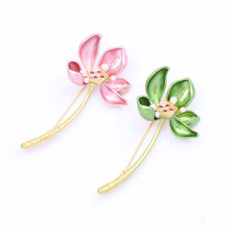 新スタイルの古風な優雅なエナメルの真珠のハスの花のブローチの創意的な雰囲気感の花卉の服はピンのスーツを飾って飾ります。
