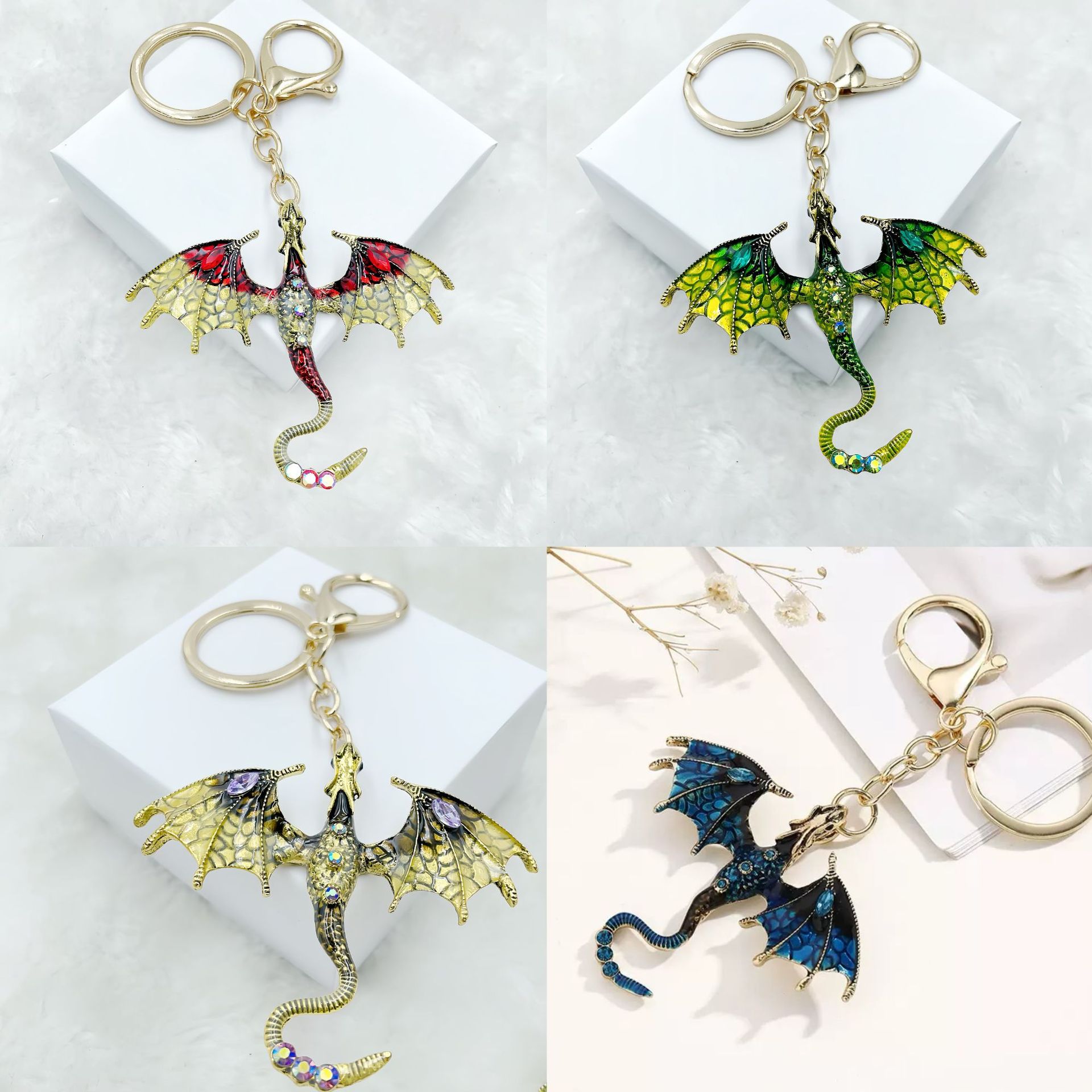 レトロなオイルドリップ漫画フライングドラゴンペンダントヨーロッパとアメリカの重工業ヒップホップダイヤモンドがちりばめられた漫画のカップルキーホルダーアクセサリー