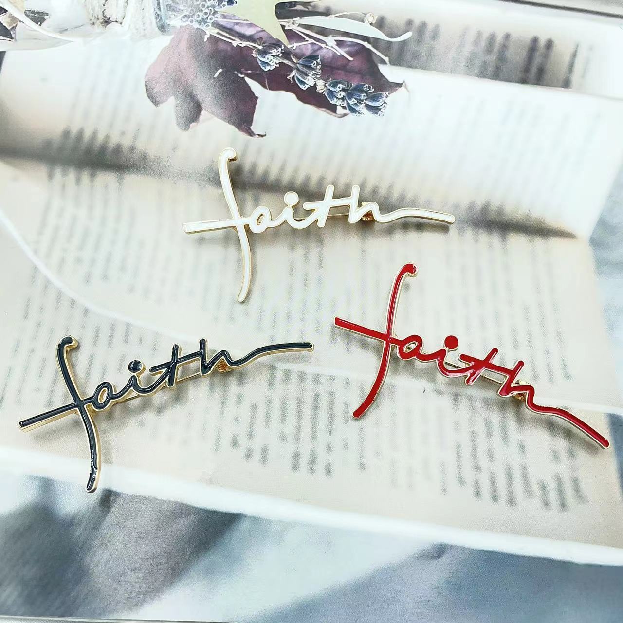 ファッションの油を垂らしたアルファベットのブローチfaithの十字のピンの男女の同項の百合の装飾の越境の商品の供給源の卸売り