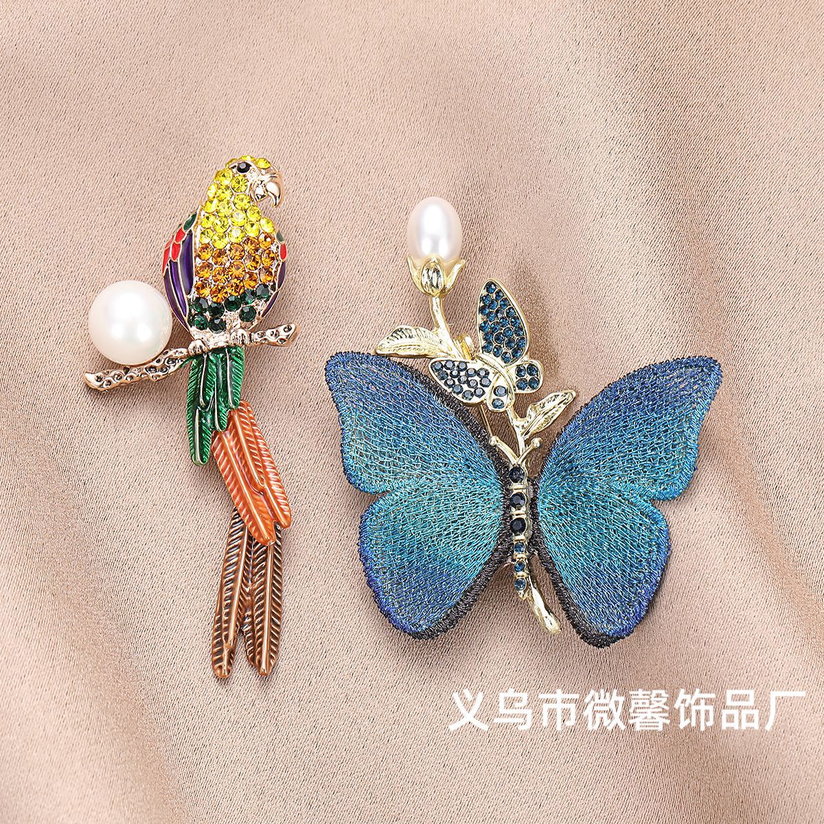 新しい中国風のレトロな国民風のライト高級刺繍生地抗真珠蝶ハイエンドパーソナライズピンコサージュアクセサリーが登場
