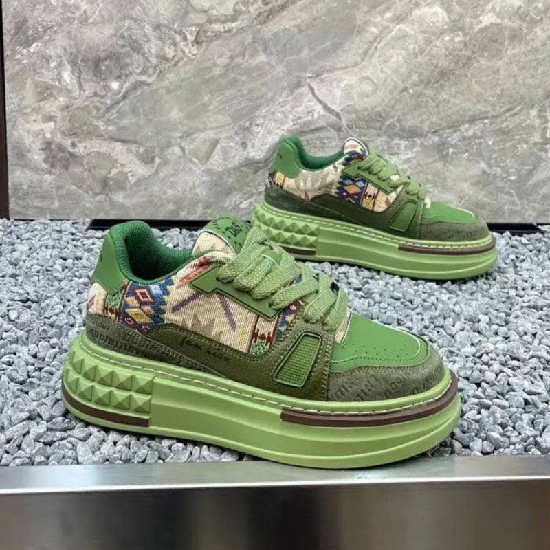 2025年の春の新型男性靴ファッションプリントカジュアルボード靴の厚い底が高くなりました。