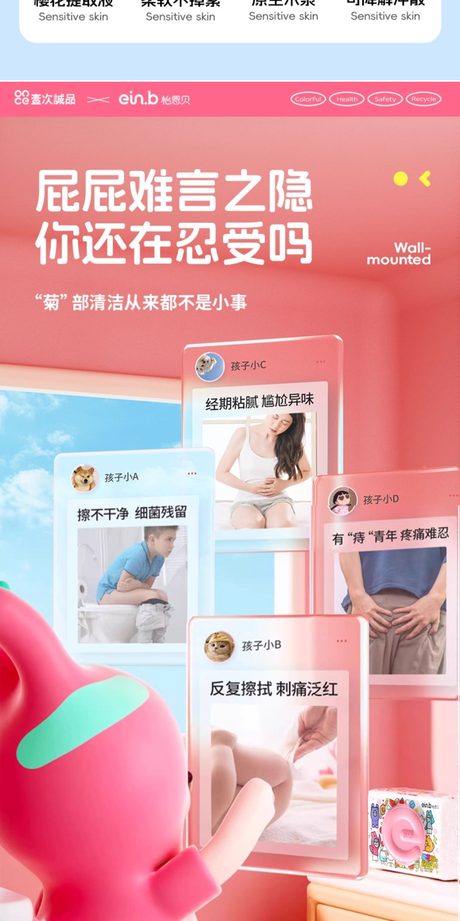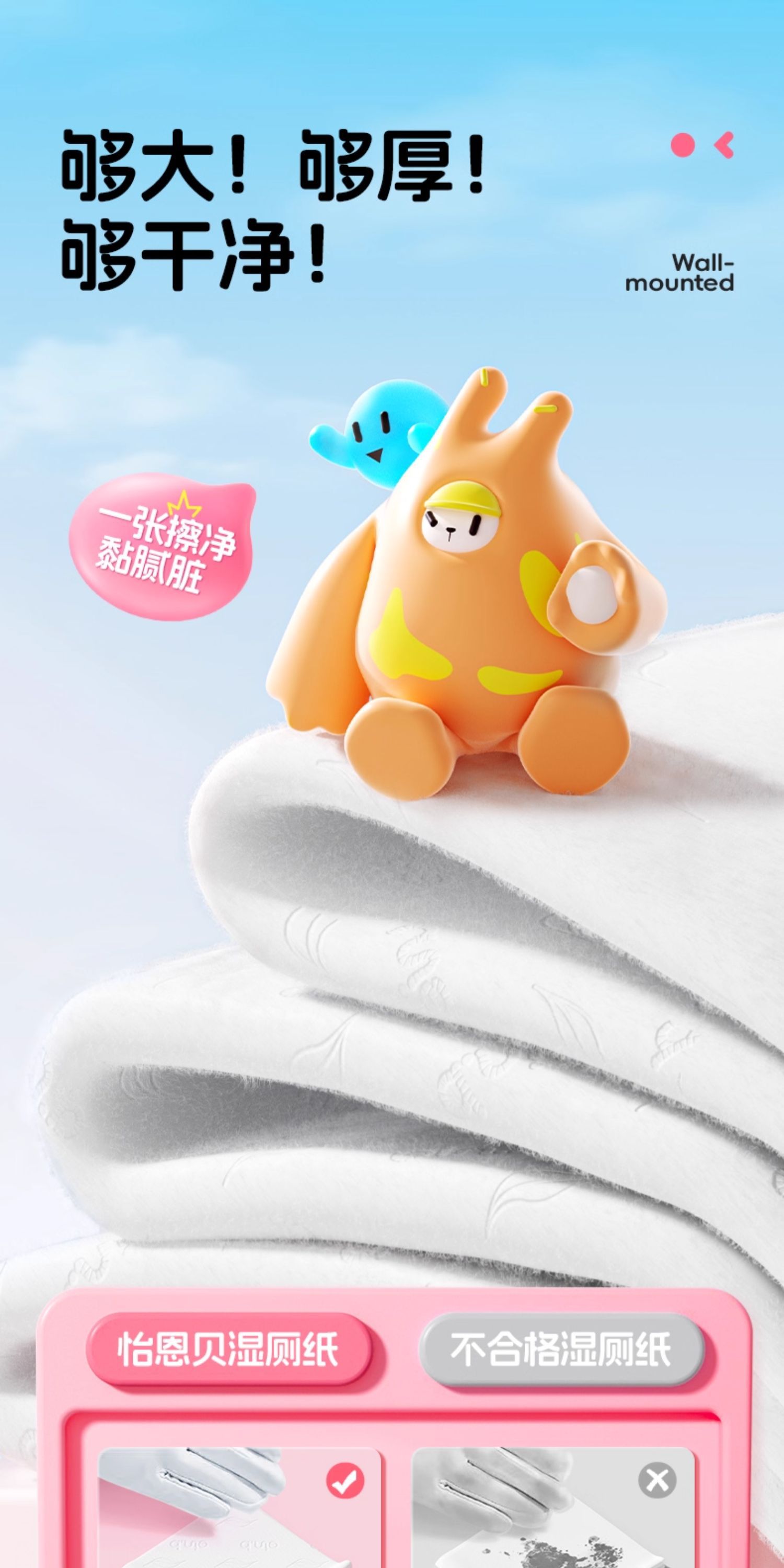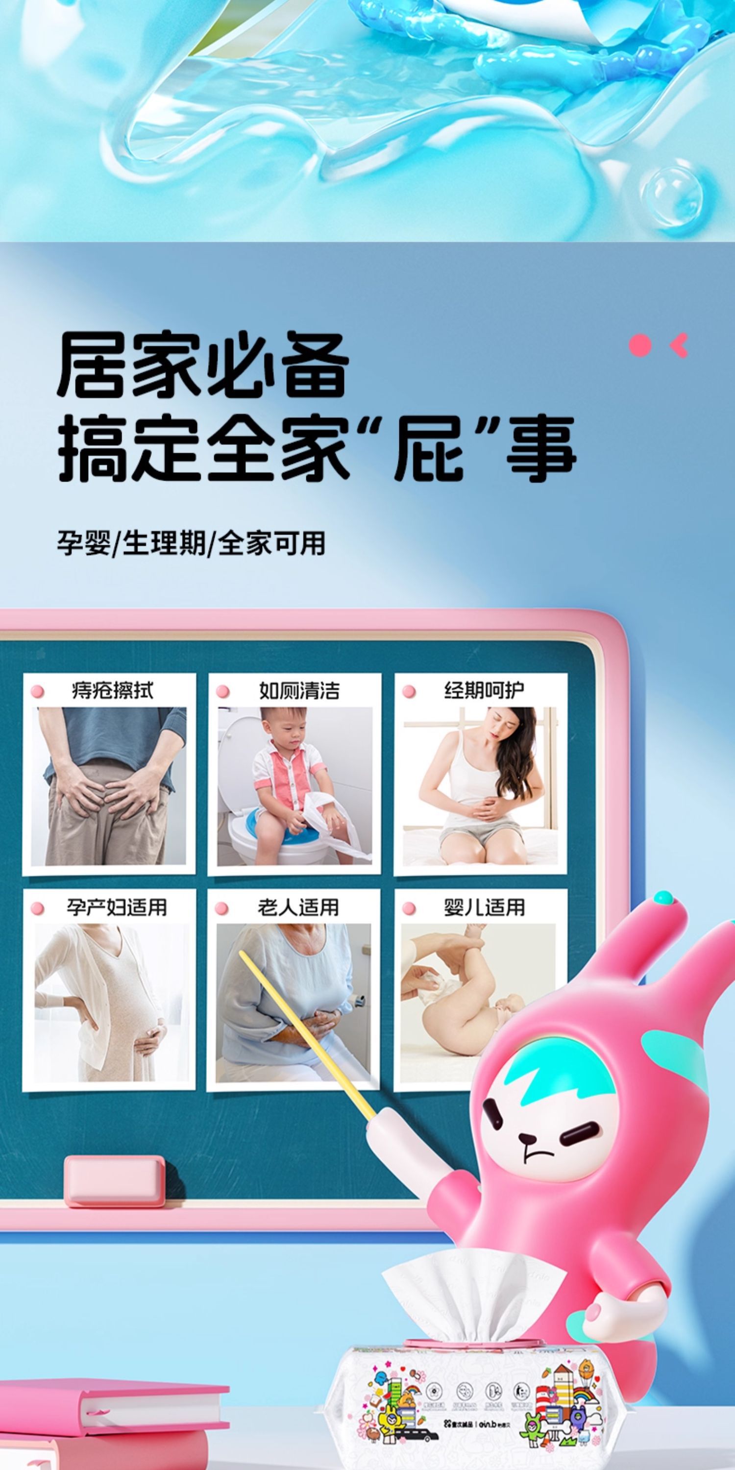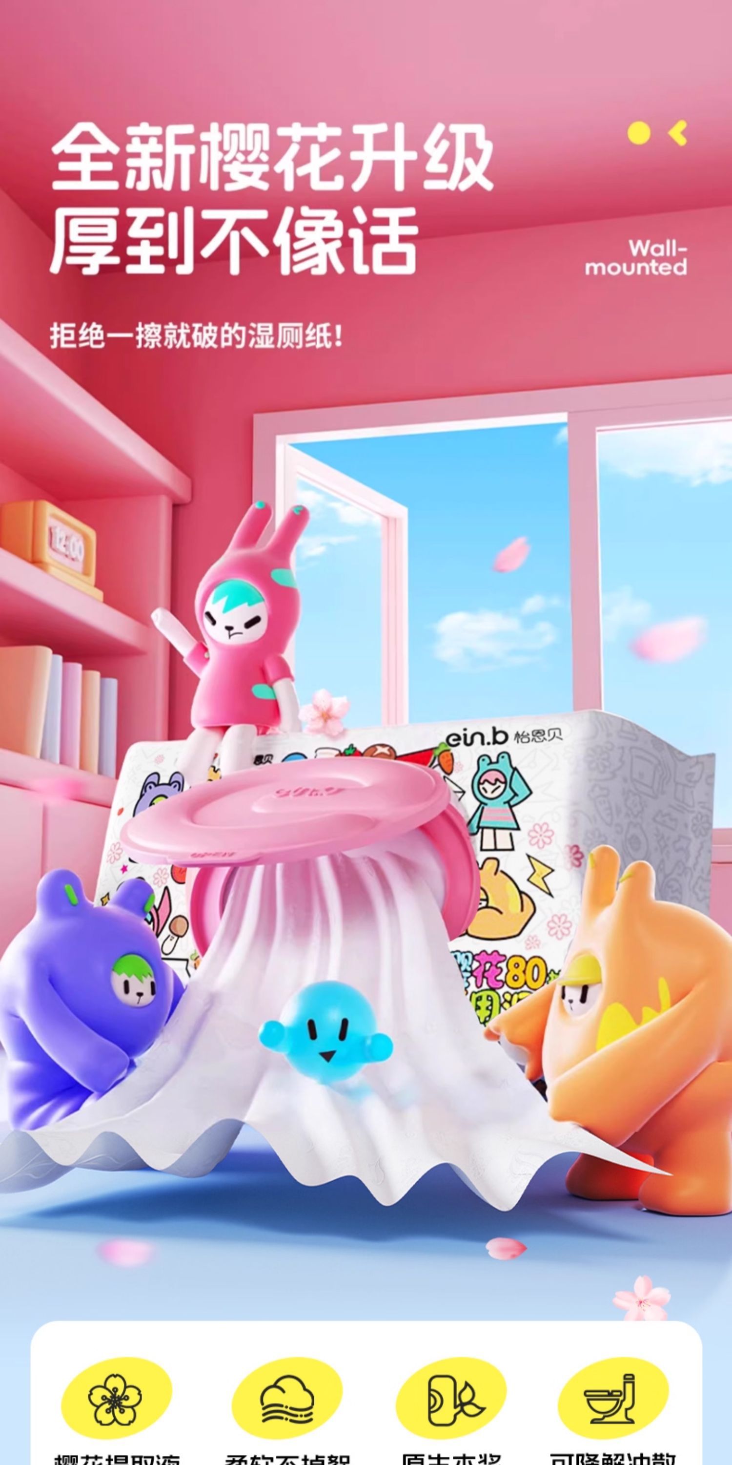 怡恩贝湿厕纸家用男女壁挂厕所柔湿巾可冲散可降解湿加大加厚马桶