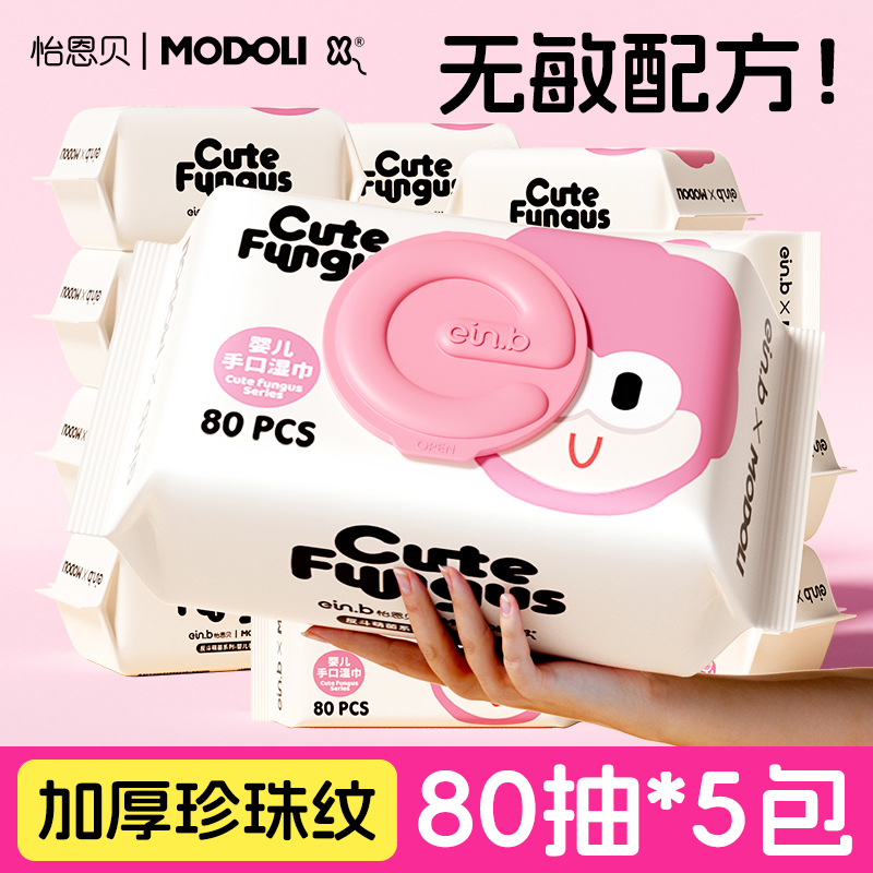 イエンベイMODOLI共同ブランドのかわいい菌柄ベビー手・口用ウェットティッシュEDI純水洗浄ソフトウェットティッシュ幼児用