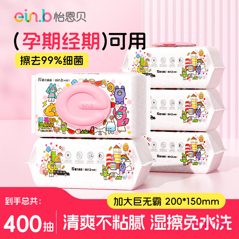 怡恩貝洋甘菊絨毛柔らかい湿ったトイレットペーパー80抽出 * 5包男性女性が尻を拭く子供の湿ったティッシュ紙