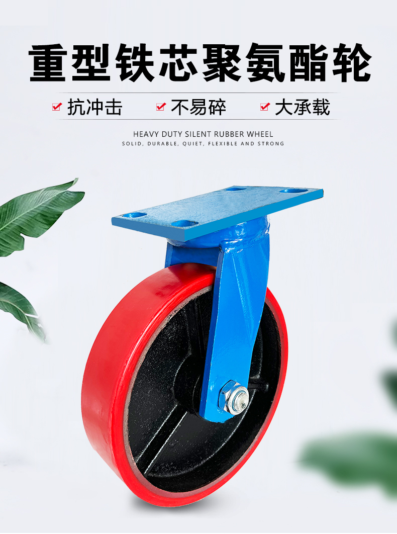 超重8インチ鉄芯PUポリウレタン耐摩耗キャスター静音で地面の車輪を傷つけない大型設備車輪
