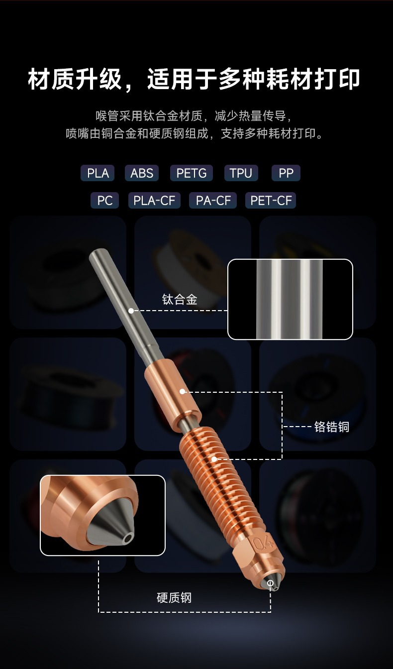 拓竹P2S热端套件可拆卸硬化钢喷嘴HF高流量一体打印头3D打印配件