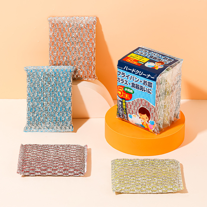 3866.糸を挟んで強力に汚れを落とす綿の皿洗い鍋スポンジ5枚に高効率の清潔な塊を入れて鍋にくっつかないブラシ鍋布を使う