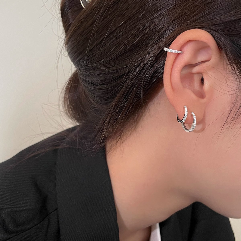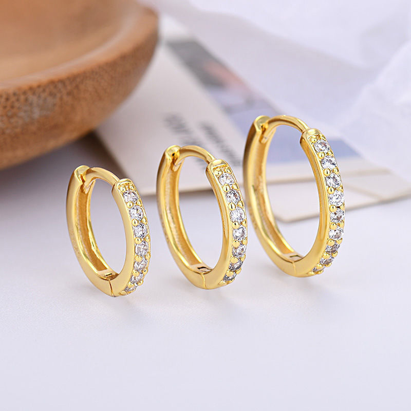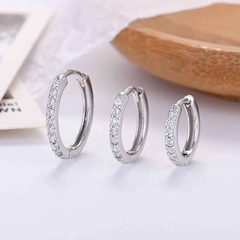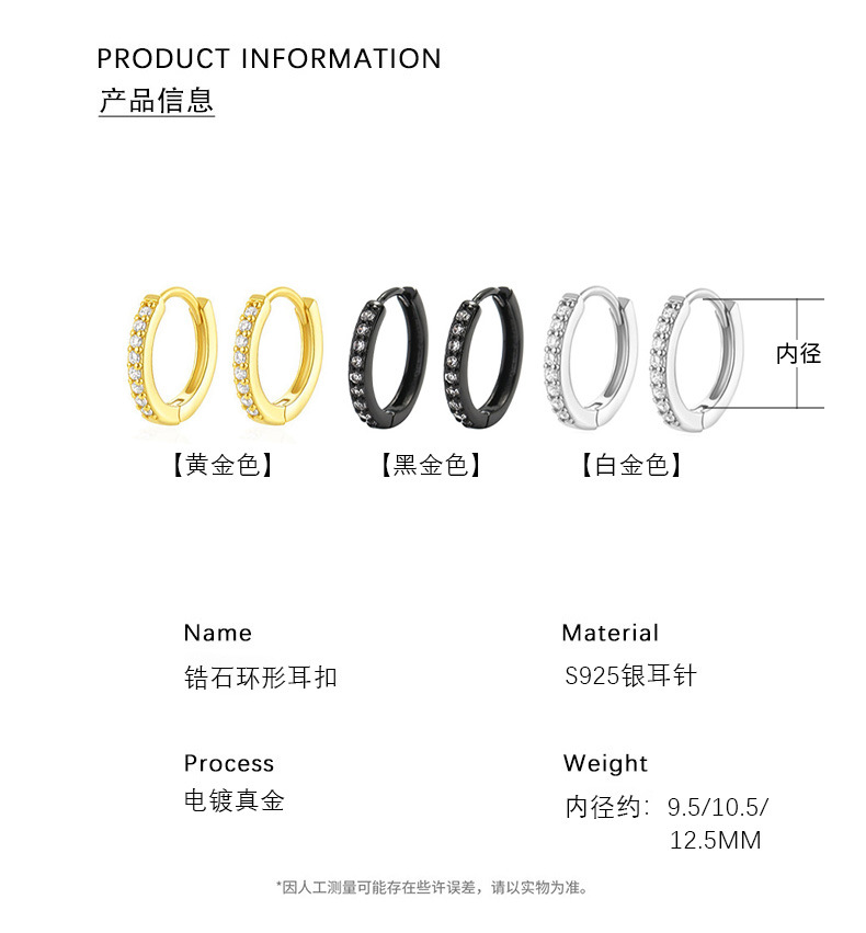欧米の国境を越えた耳輪S925純銀耳針耳ボタン円形ジルコンイヤリング女性ファッションジュエリー小衆耳飾り
