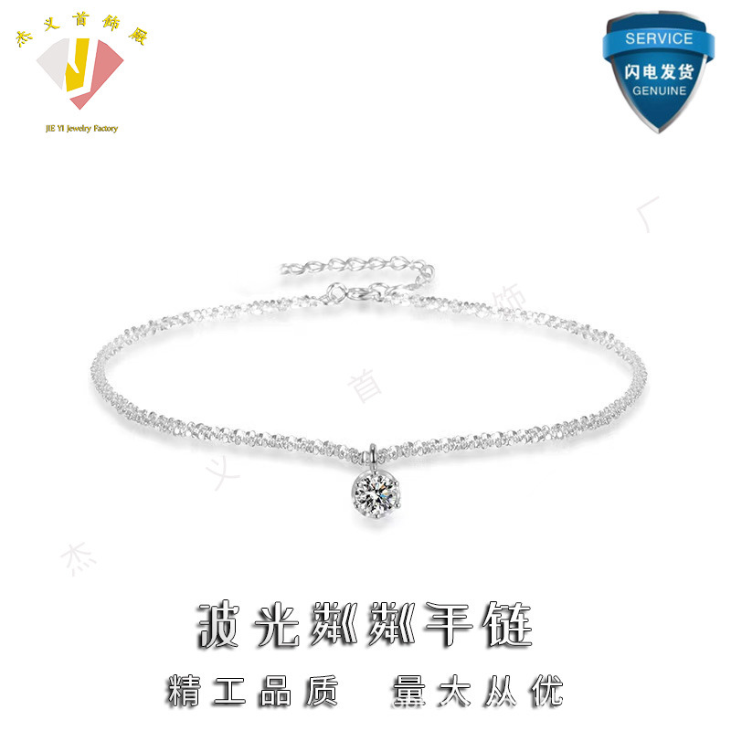 925フラッシュドリルの銀色の足のチェーンの女性の砕いた銀のブレスレットの女性の波がきらきらと輝く高級感があります。