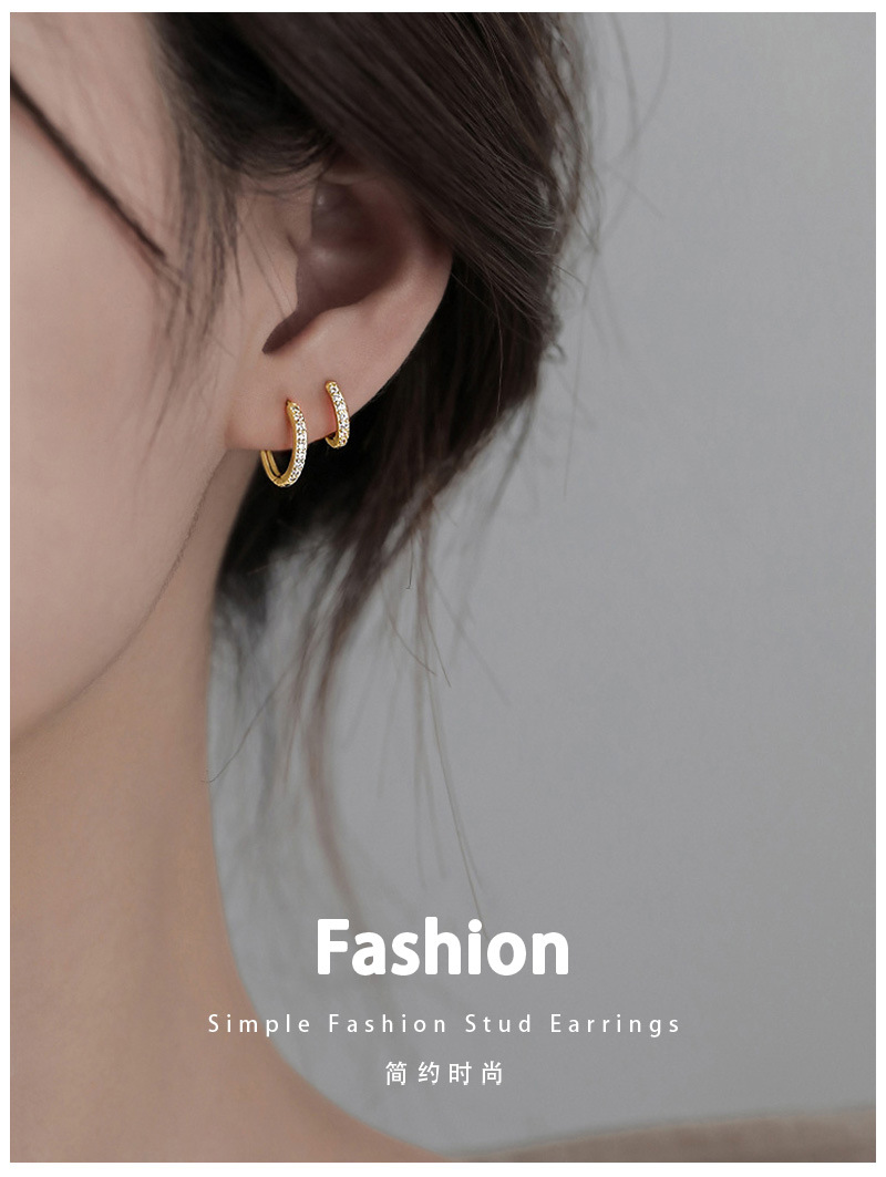 亚马逊热销铜镀真金高级感镶锆石耳扣百搭小众精致时尚高级感耳环