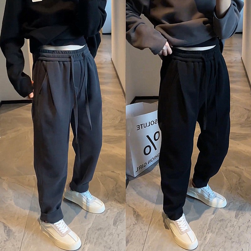 墨麦客メンズ加厚裏起毛カジュアルパンツ2025冬新作ゴムウエストストレートパンツメンズ91153