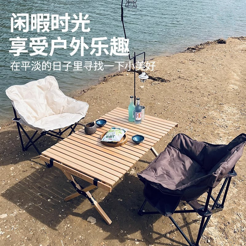 屋外ポータブル折りたたみ椅子キャンプピクニック折りたたみ椅子屋外卵ロールテーブルセット背の高い月椅子