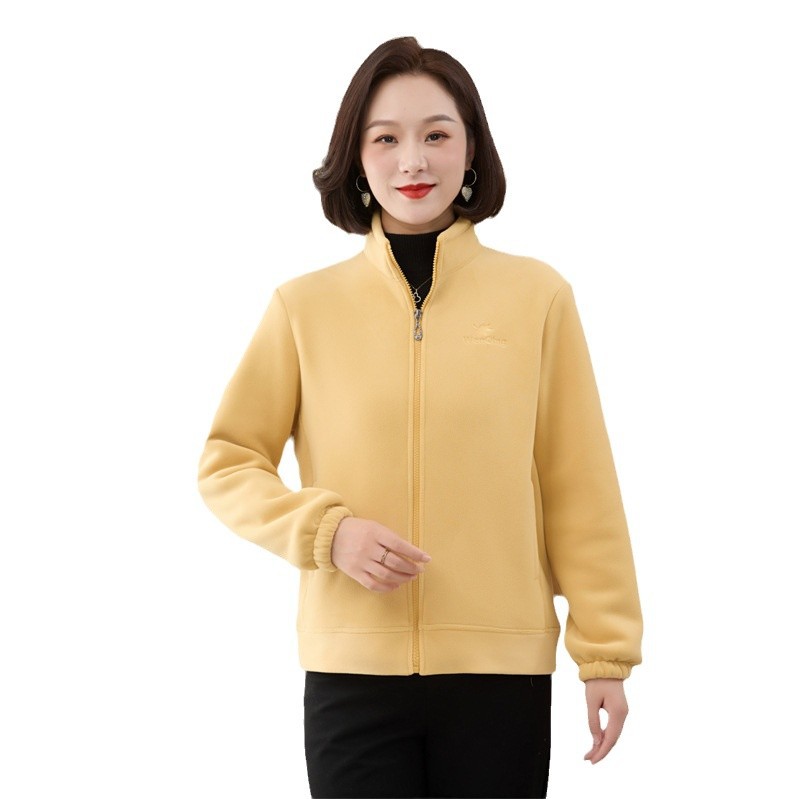 新しい中年のお母さんの秋冬の服のフリースの2024の洋風の上着の中で高齢者の女性の秋冬の純色の衛衣